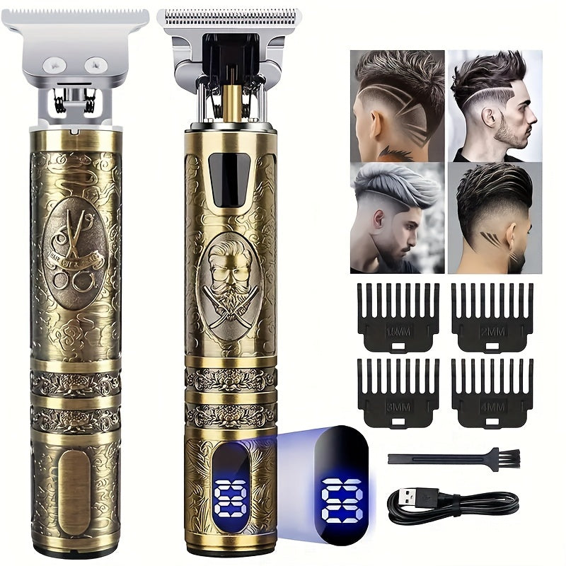 Беспроводной профессиональный триммер для волос с LED-дисплеем, зарядкой USB-C и 4 аксессуарами