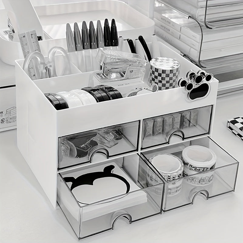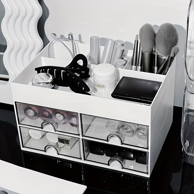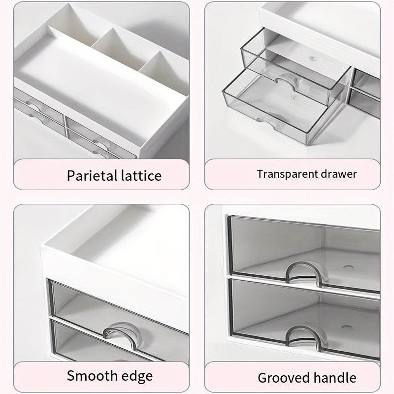 Коробка для хранения косметики с ящиком для организации косметических средств на туалетном столике или офисном столе. Подходит для макияжа, ювелирных изделий, ухода за ногтями, ухода за кожей и домашней организации.