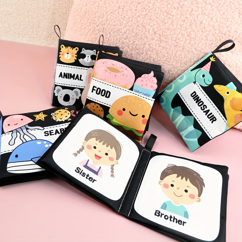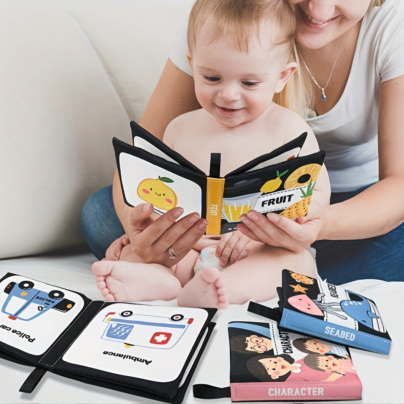 Мягкая тканевая книга для детей и малышей с высококонтрастными черно-белыми яркими иллюстрациями, нетоксичная образовательная игрушка