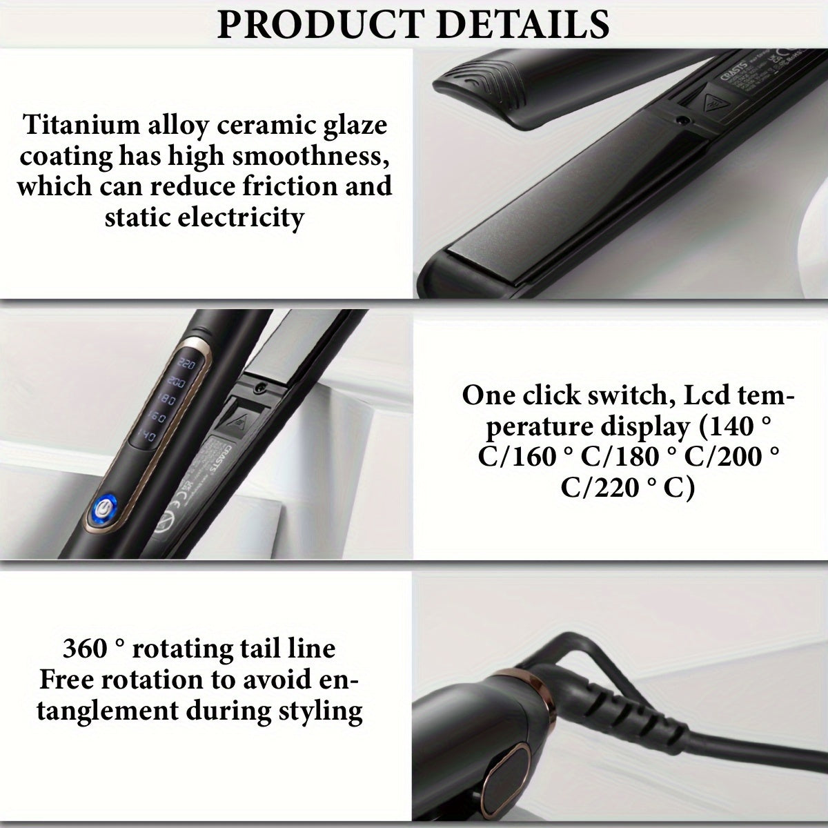 Двухрежимный стайлер для волос с цифровым дисплеем, титановыми пластинами, регулируемой температурой, штекером типа C