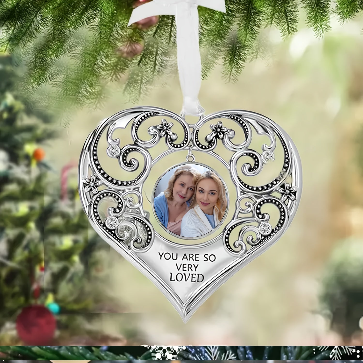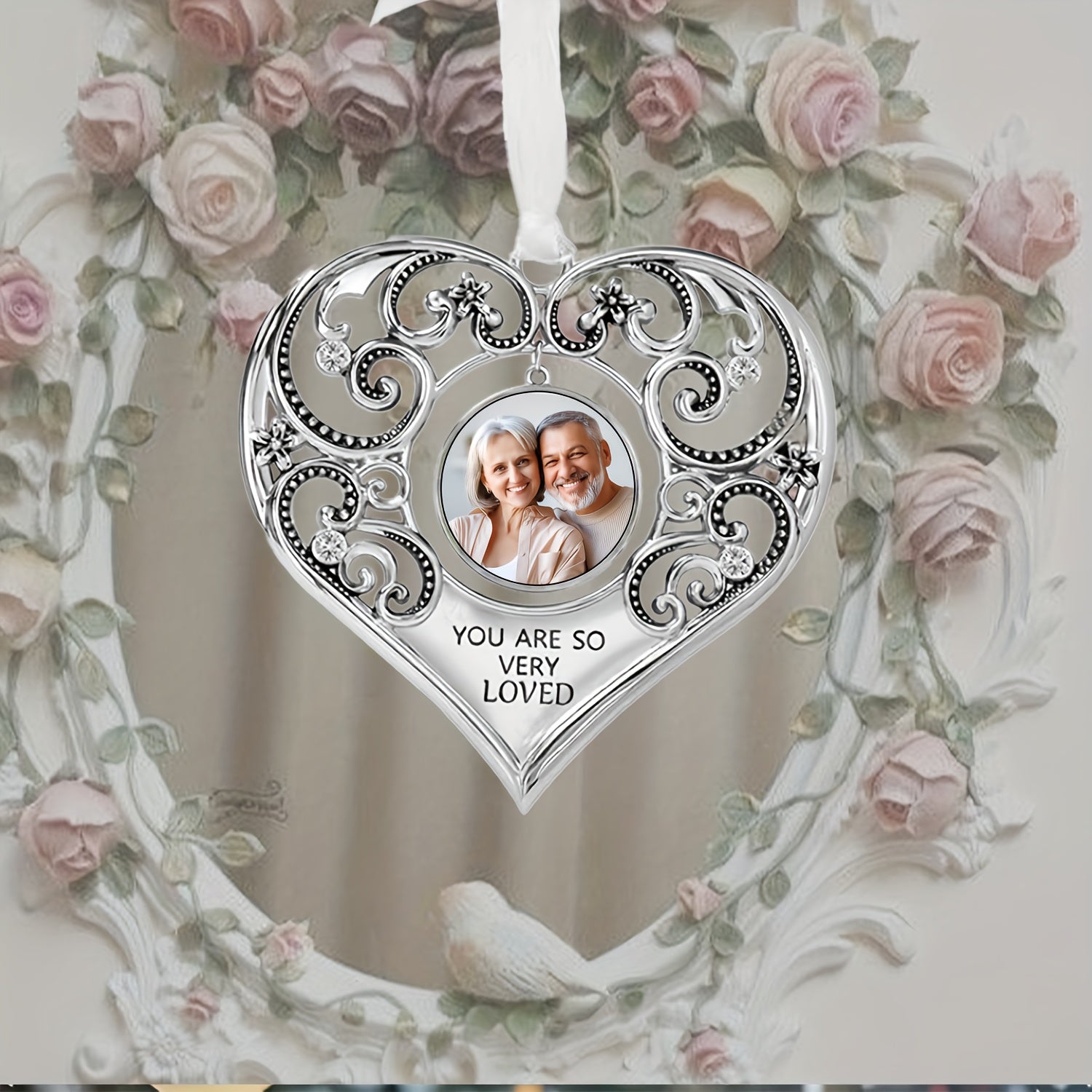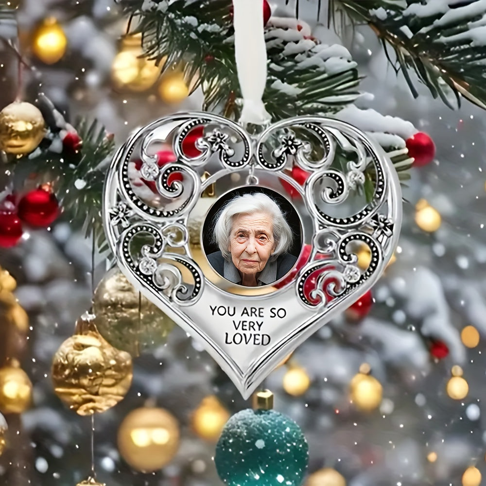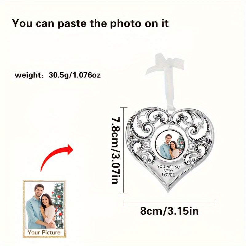 Нержавеющая сталь Сердечный рождественский украшение с индивидуальной фотографией и крыльями ангела