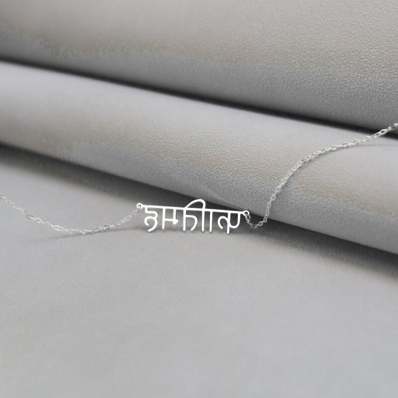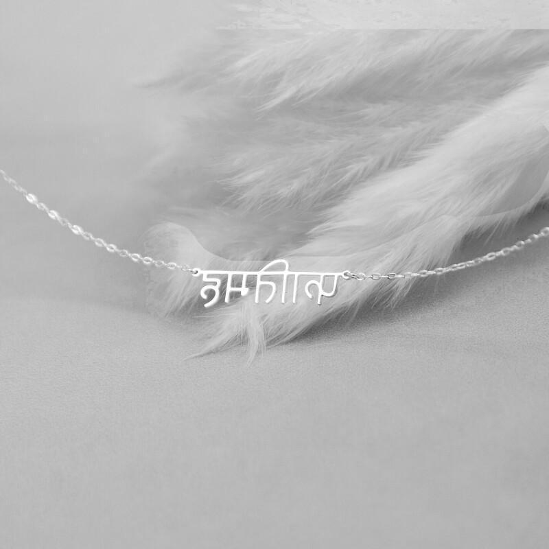Индивидуальное ожерелье с именем на хинди и панджаби в санскритском письме, изготовленное из высококачественной нержавеющей стали 304L, идеально подходит для повседневной носки и подарков.