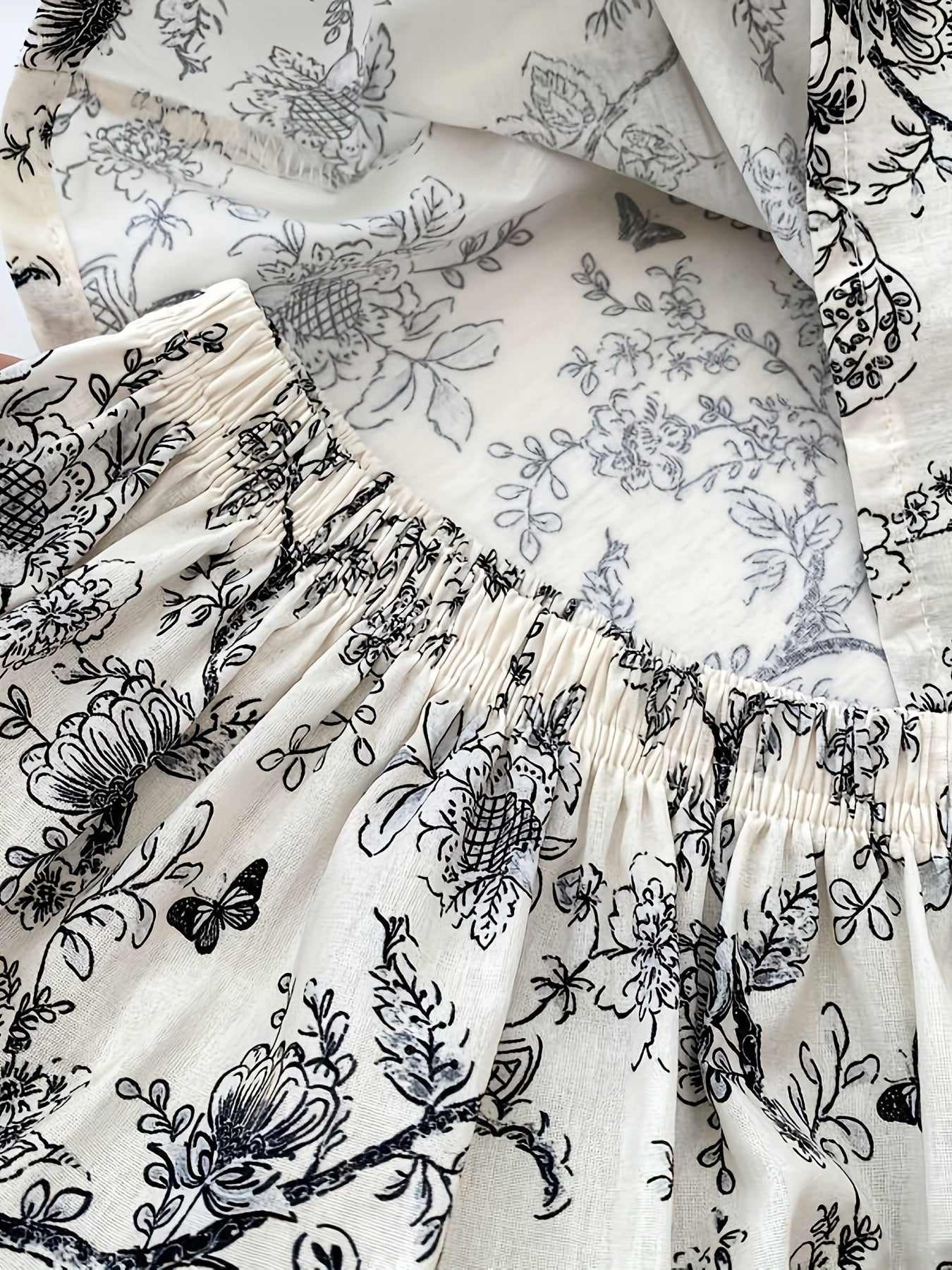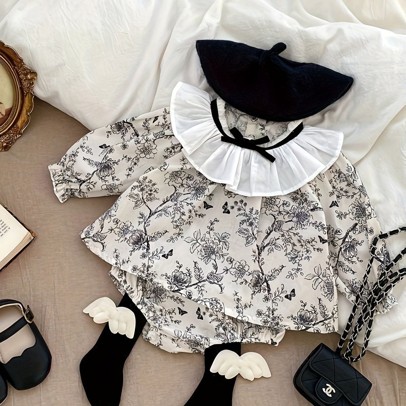 Комплект одежды для девочки: хлопковая блузка с цветочным принтом и шорты для весны и осени