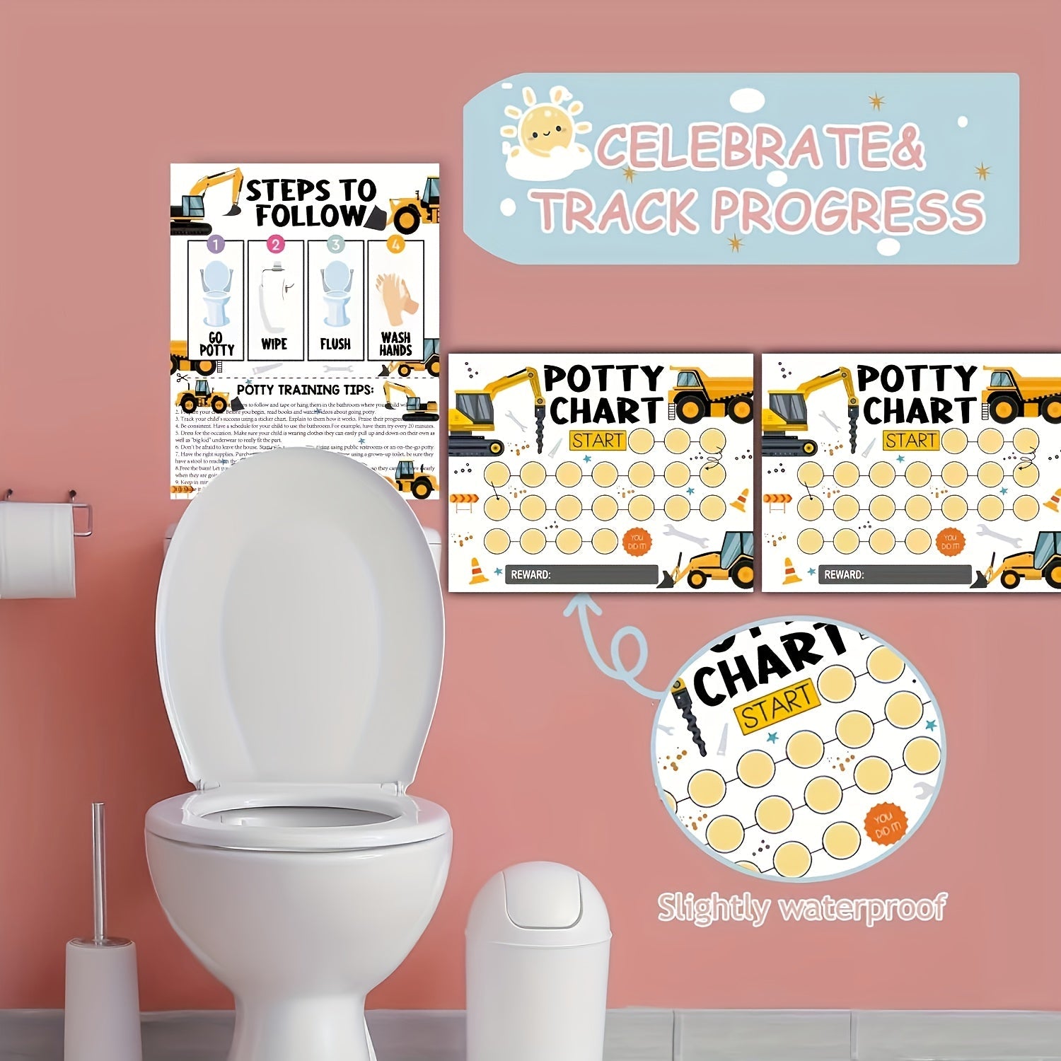 Милый график приучения к горшку с экскаватором с простыми инструкциями и веселыми наклейками - обязательный атрибут для детей
