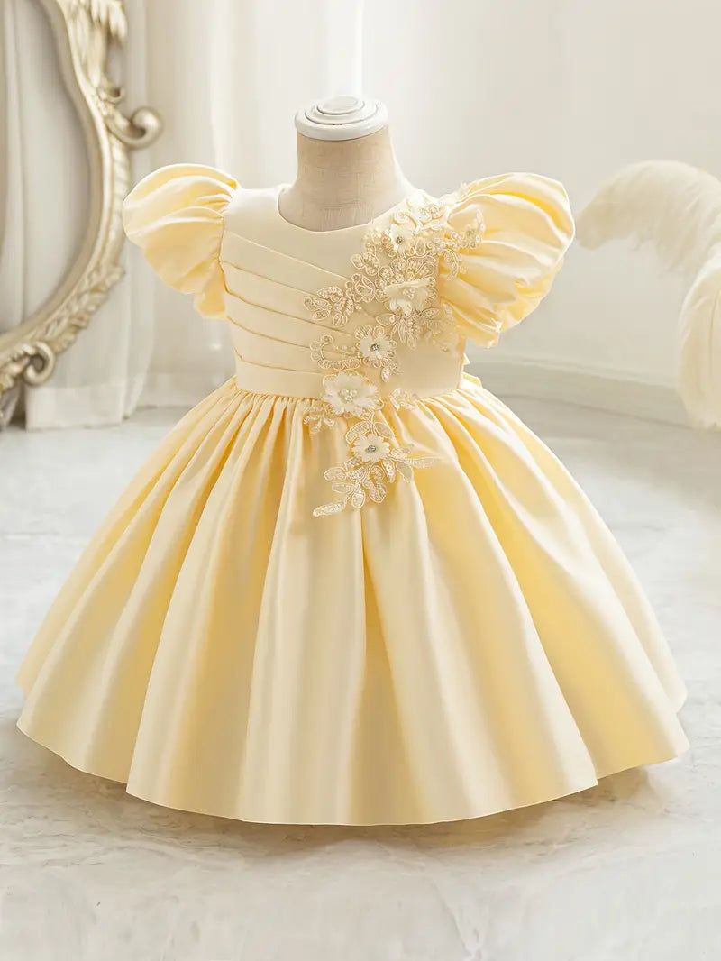 Платье Elegant Princess от Demorace для особых случаев - полиэстеровый состав с круглым вырезом, фонарными рукавами, длиной до колен, вискозной подкладкой, расклешенным подолом, силуэтом юбки-абажур, тканевый материал -