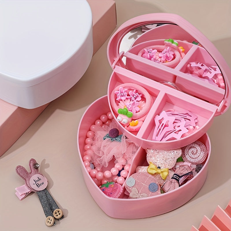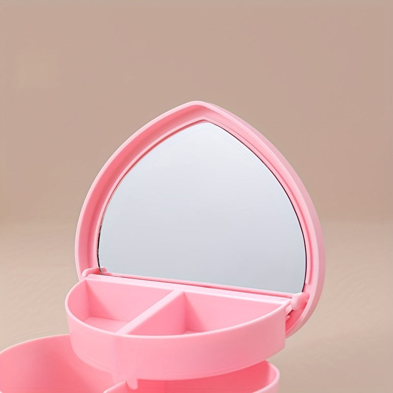 Розовая шкатулка для украшений с двойным зеркалом для макияжа и хранения