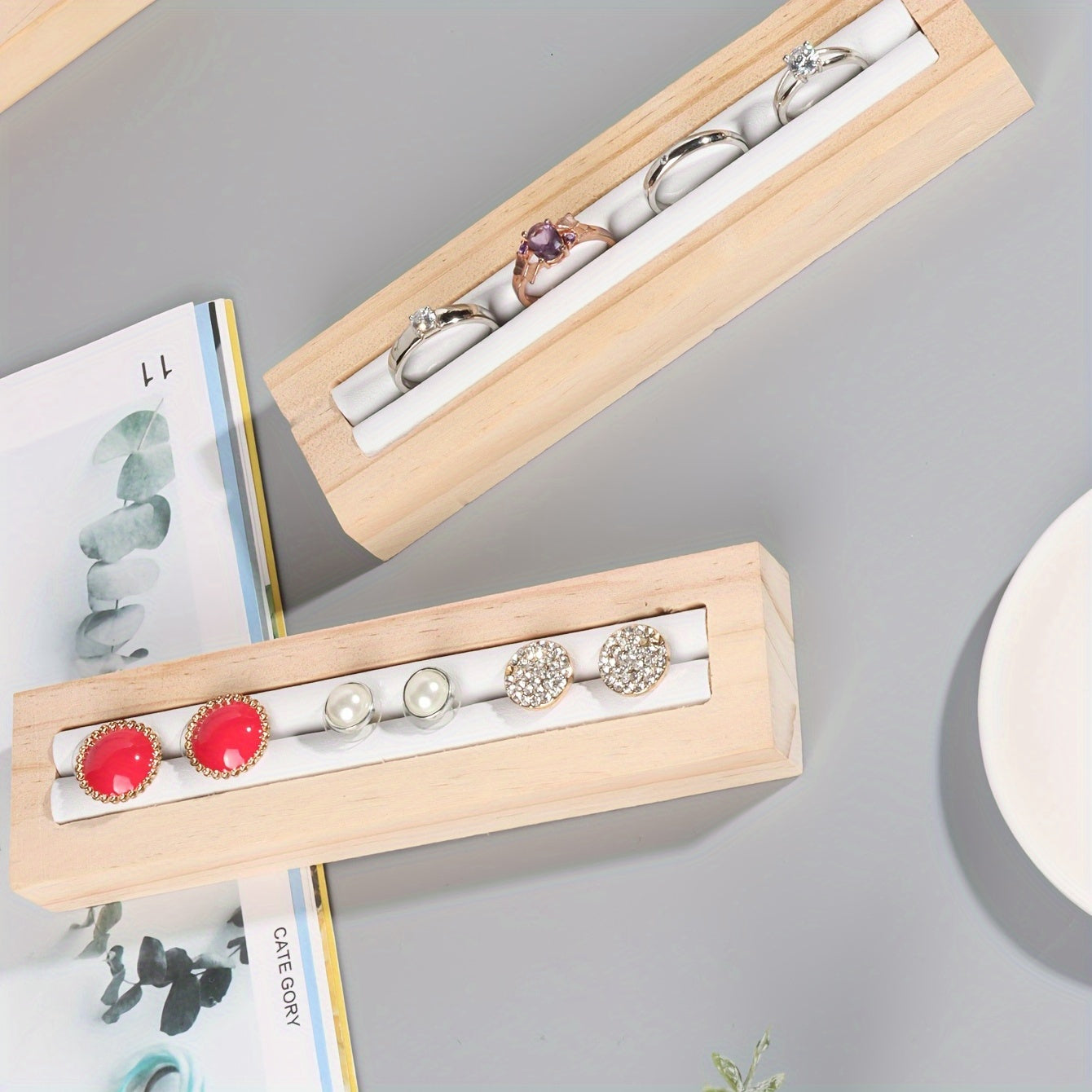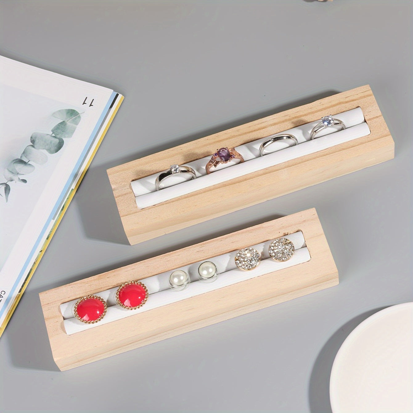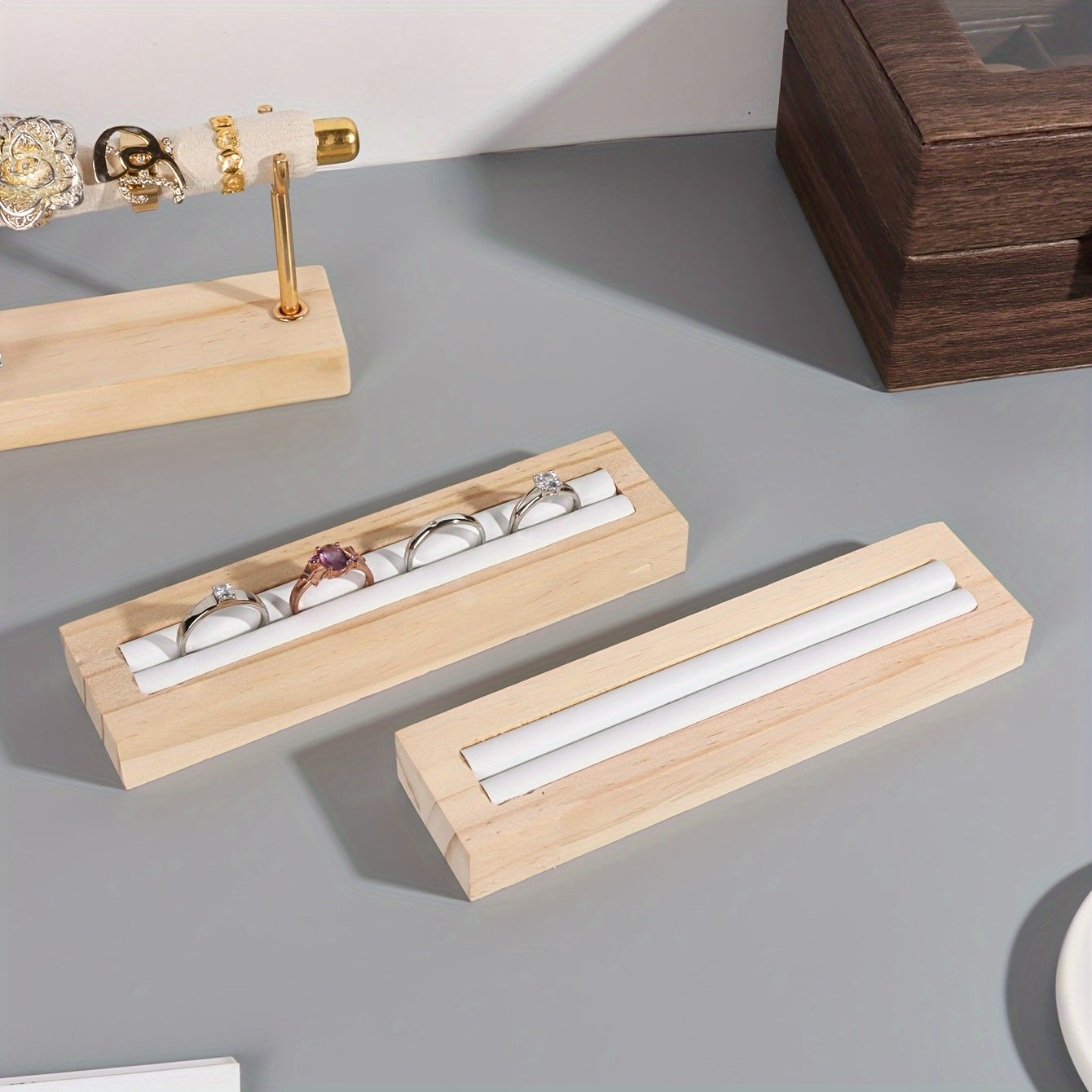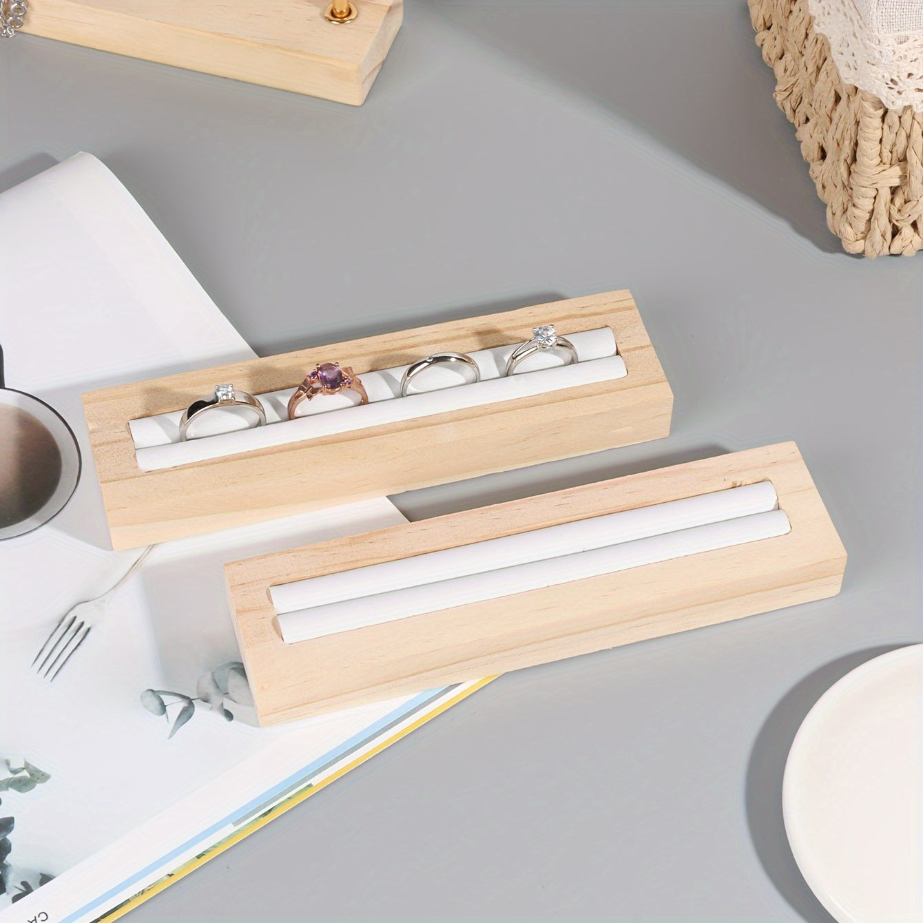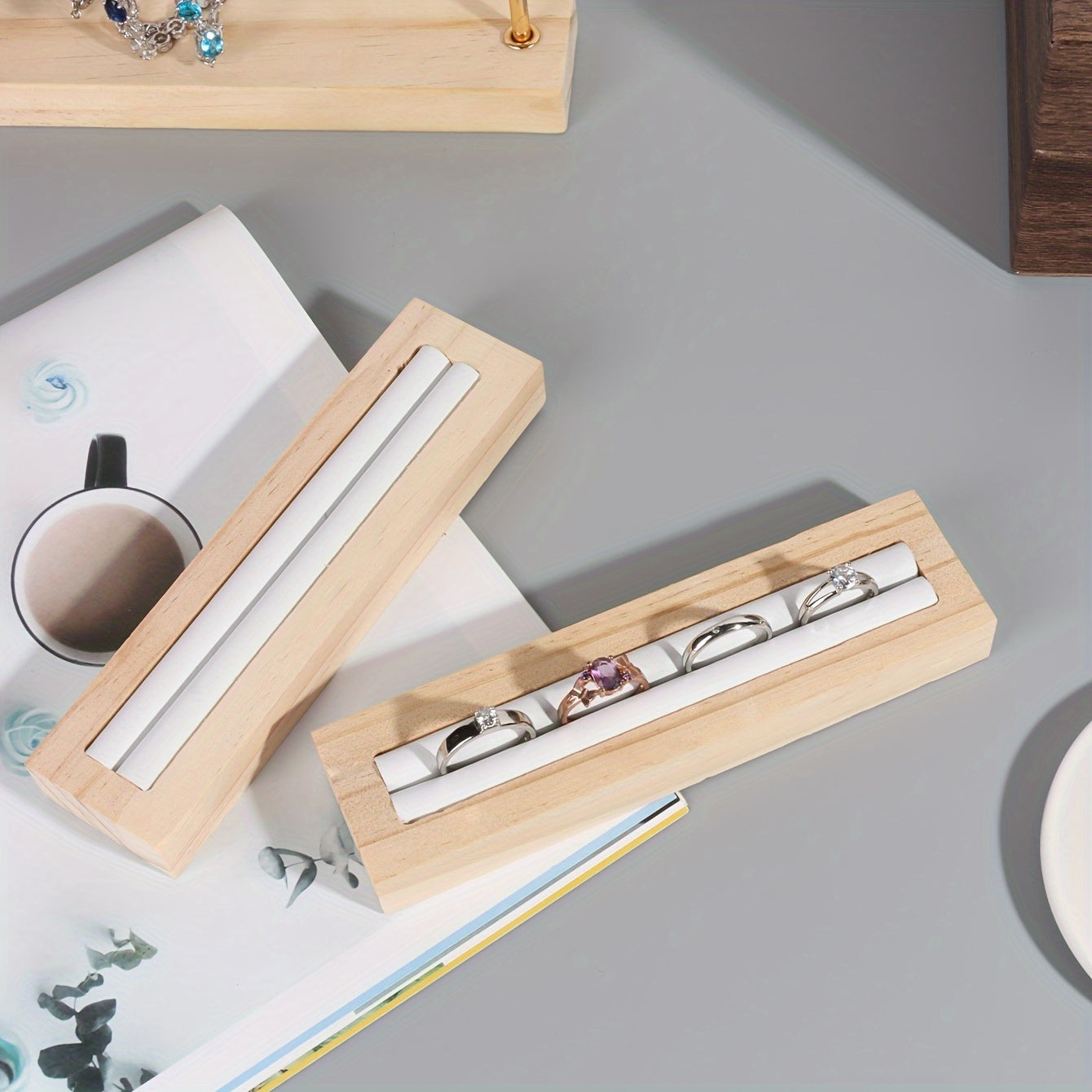 Деревянкая подставка для колец с держателем из PU-кожи для организации украшений