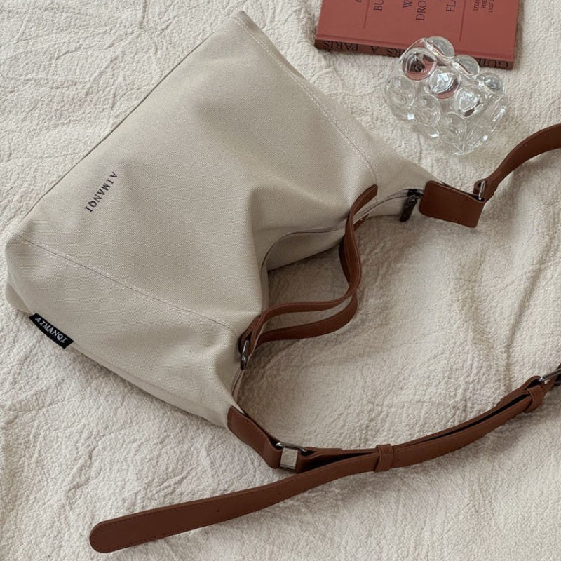 Холщовая сумка-тоут для студентов, повседневное использование, вдохновленная корейской и японской культурой, бежевый, хаки, темно-серый