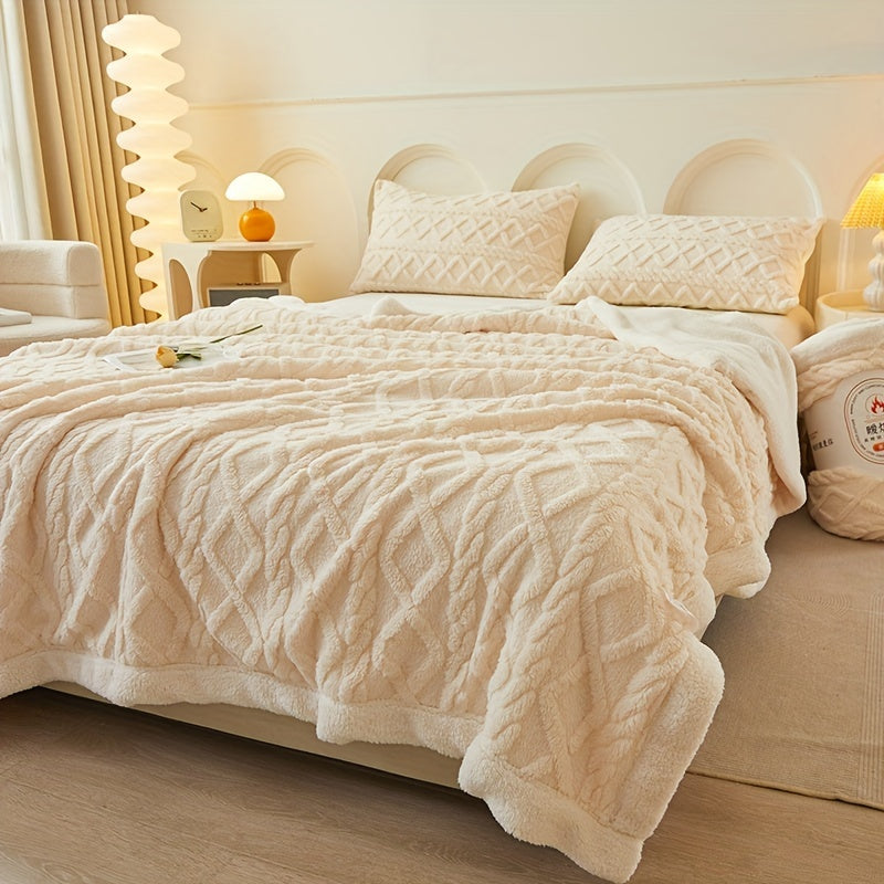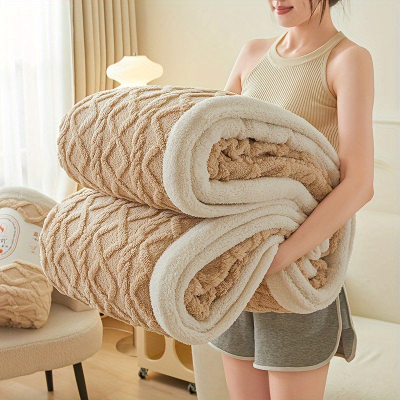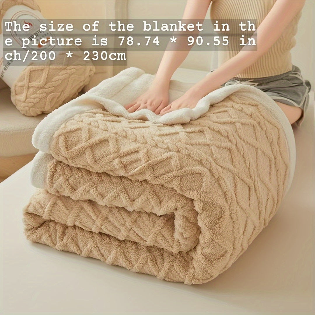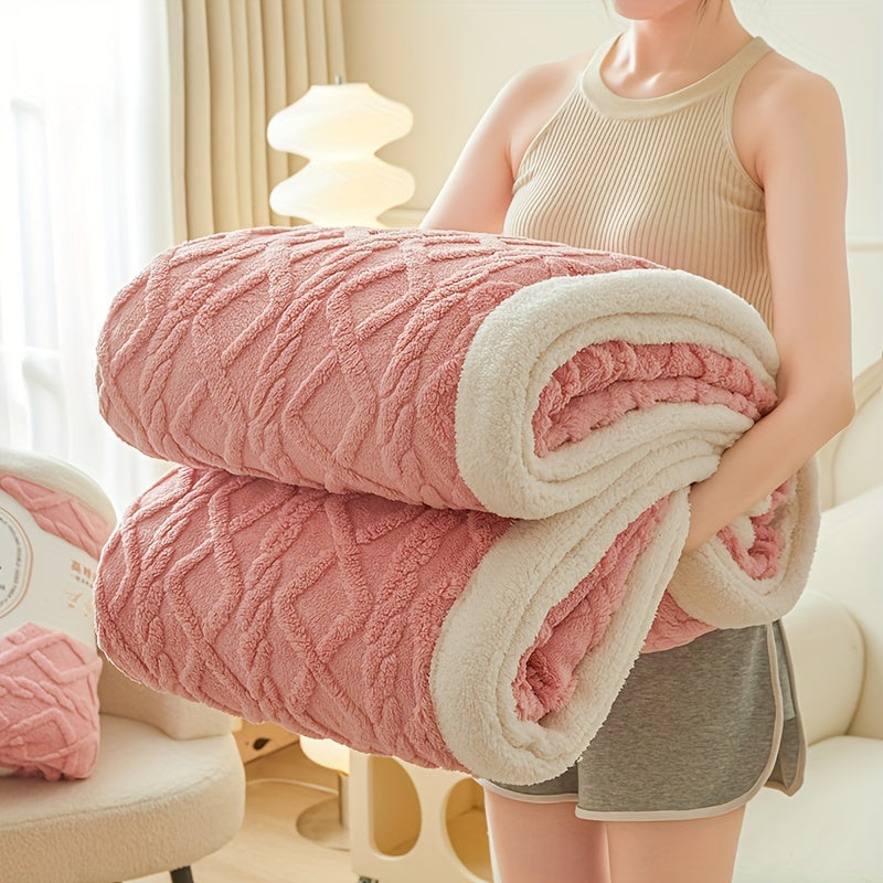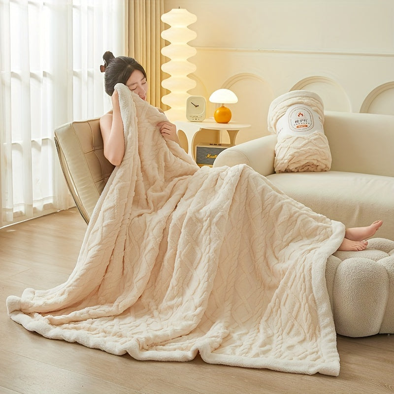 Двухслойное флисовое одеяло из тафеты с геометрическим узором, всесезонное, вязаное покрывало для кровати