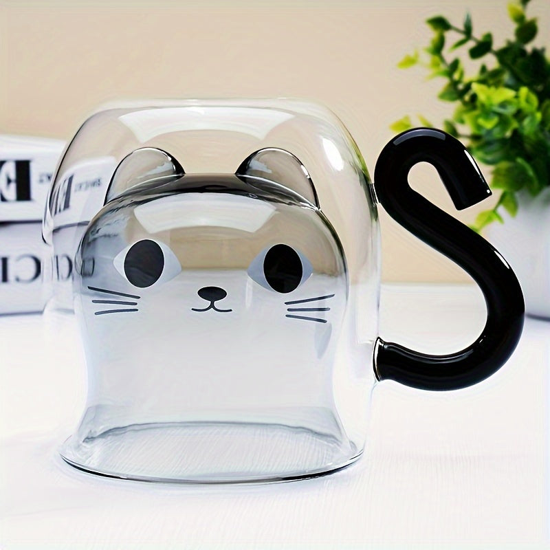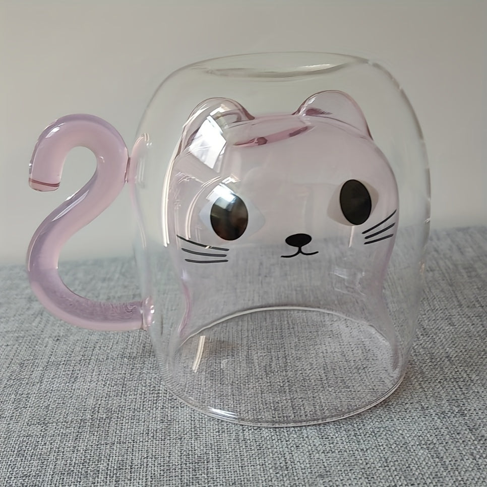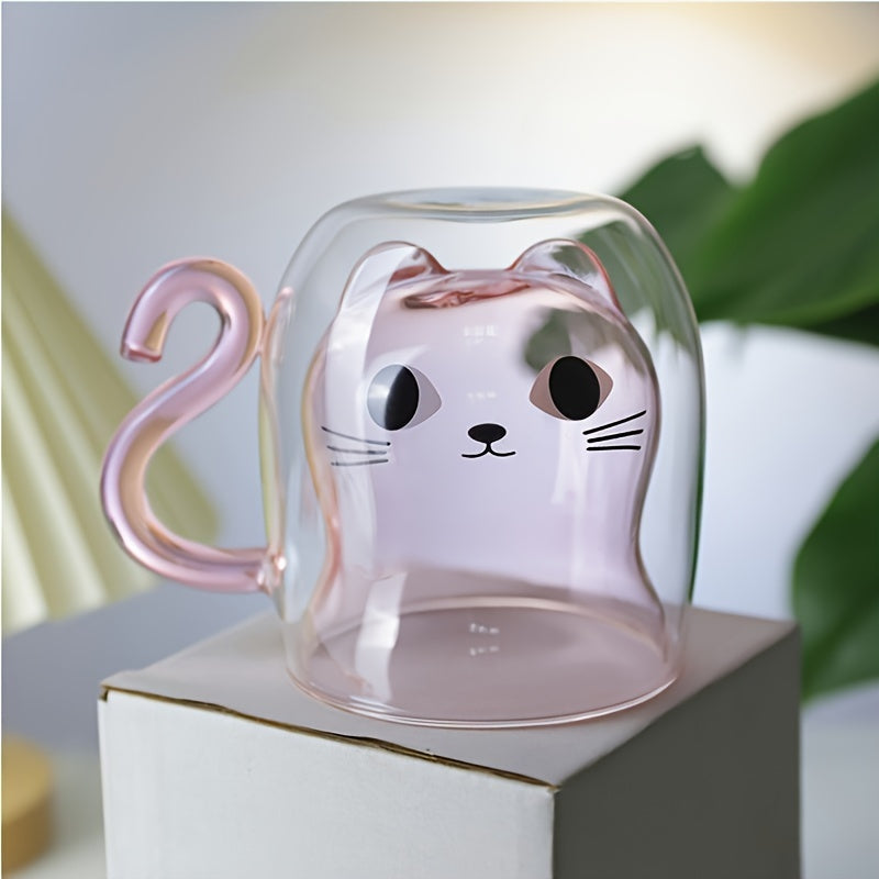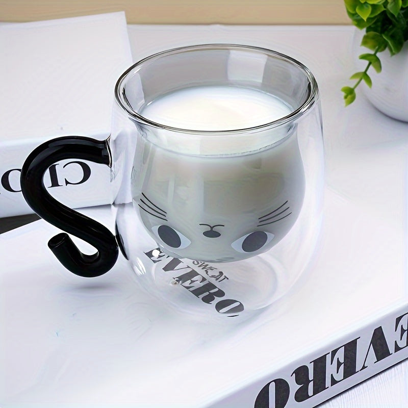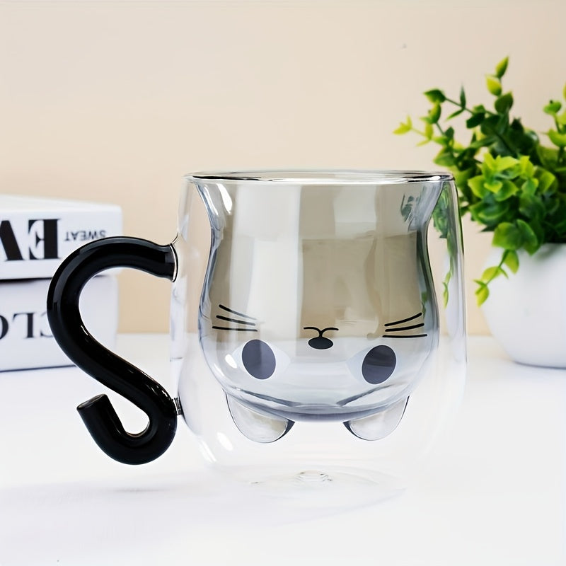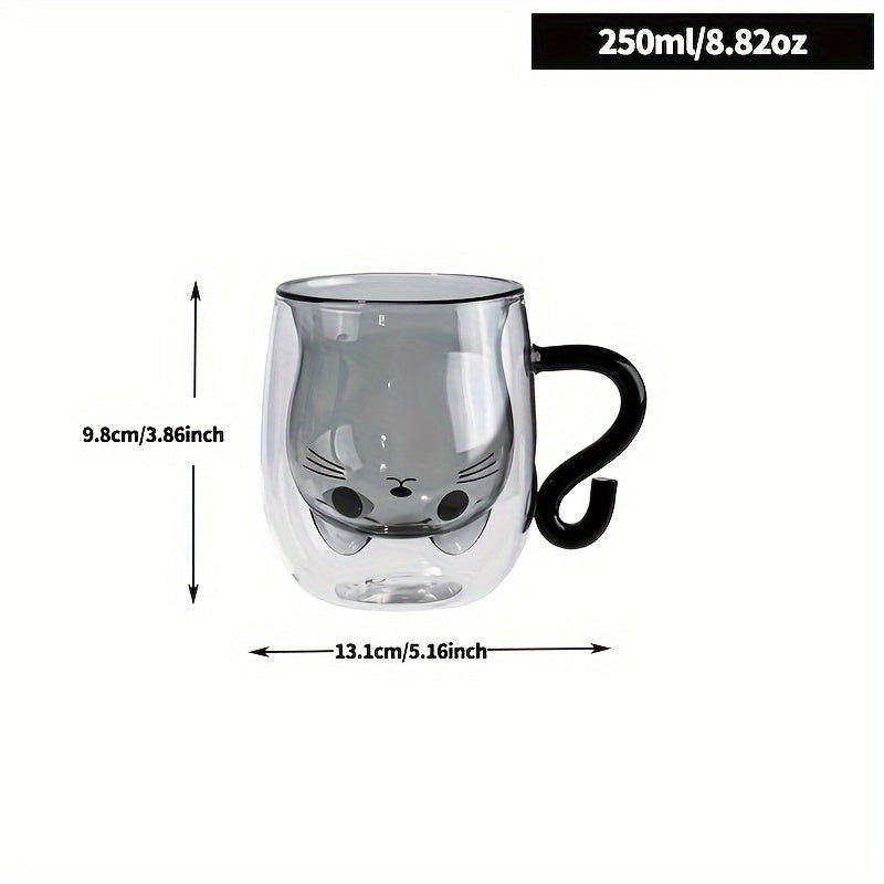 Стеклянная кофейная кружка с двойными стенками и дизайном кота - многоразовая чашка для горячих и холодных напитков - идеальный подарок на день рождения или праздники.