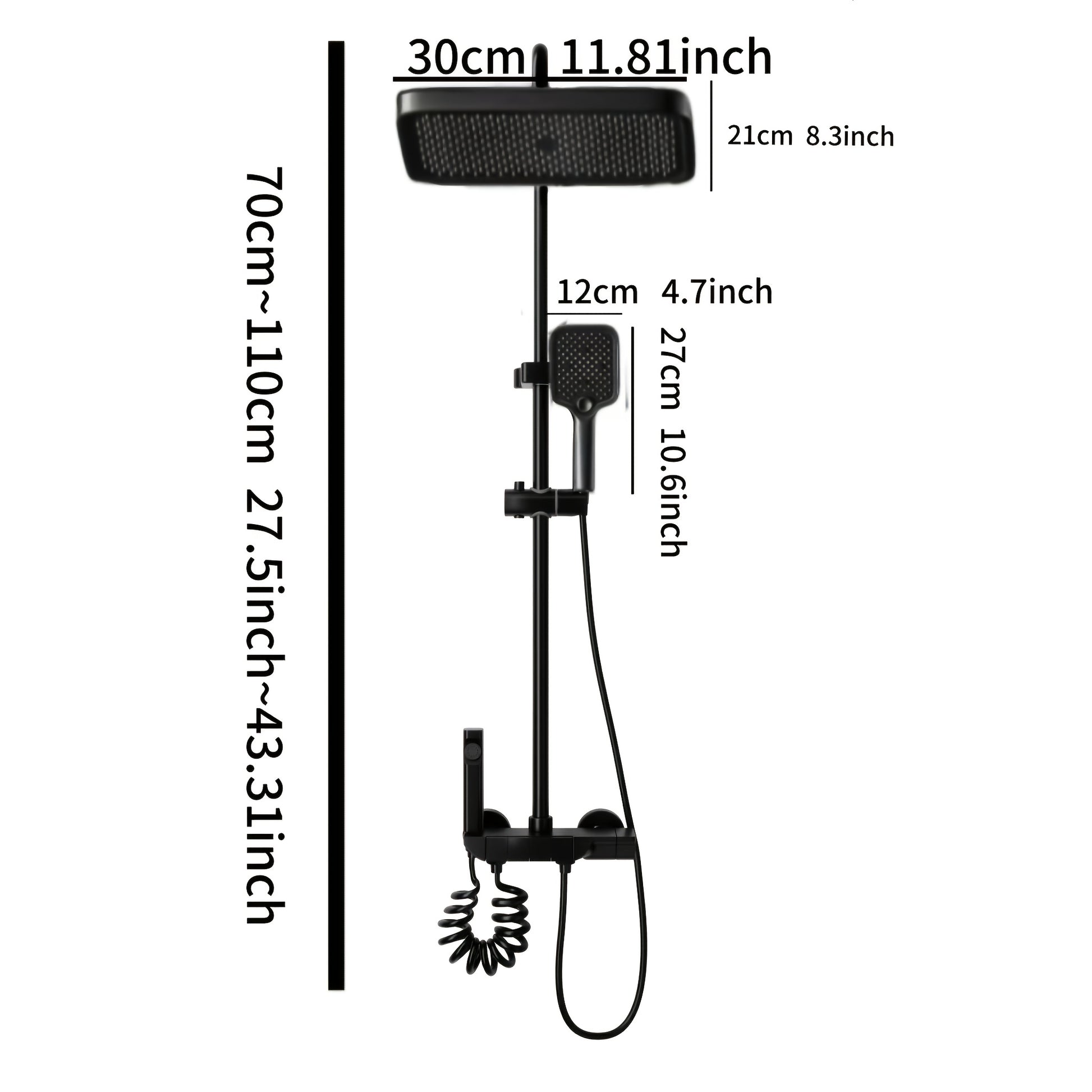 Душевой комплект с двойным душем, водопадным смесителем, распылителем, 4-в-1 управлением, регулируемыми режимами воды, горячей и холодной водой, а также регулируемой высотой.