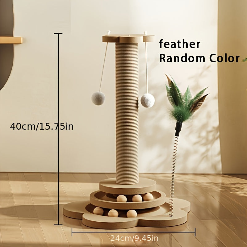 Прочный игровой комплекс для домашних животных с сизалевым когтеточкой, вертикальной когтеточкой и дразнилкой - высококачественная игрушка для кошек в различных цветах перьев.