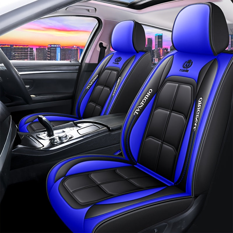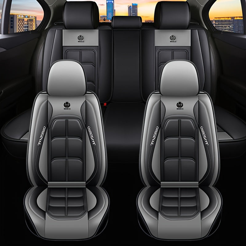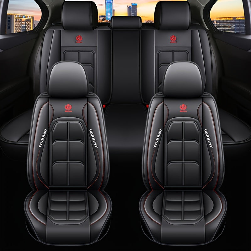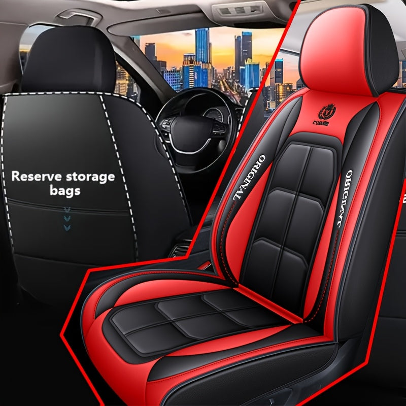 Прочные чехлы для автомобильных сидений из искусственной кожи PU с красной прострочкой и сумками для хранения