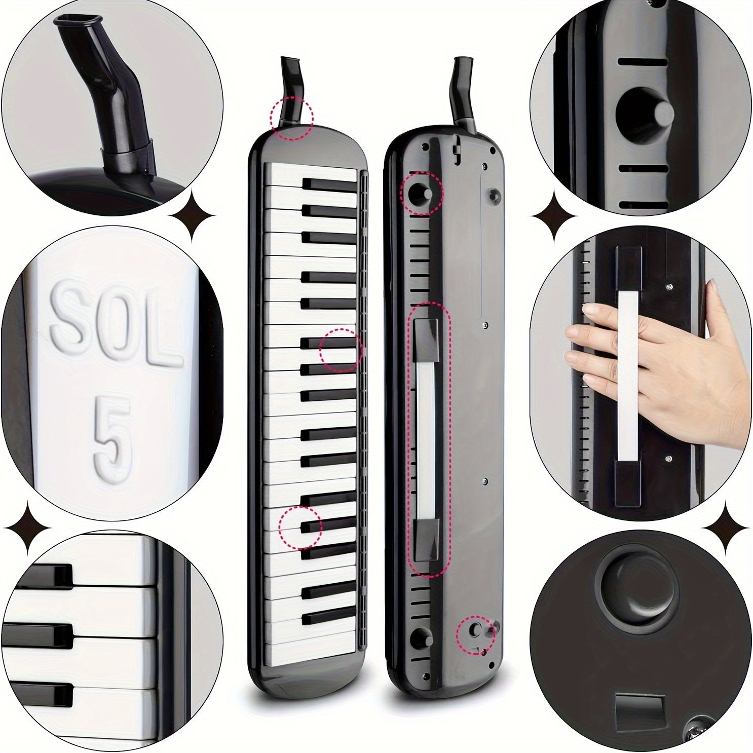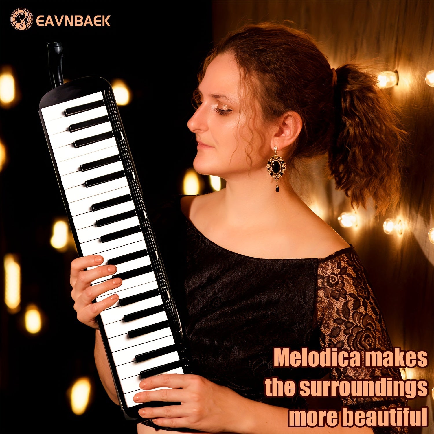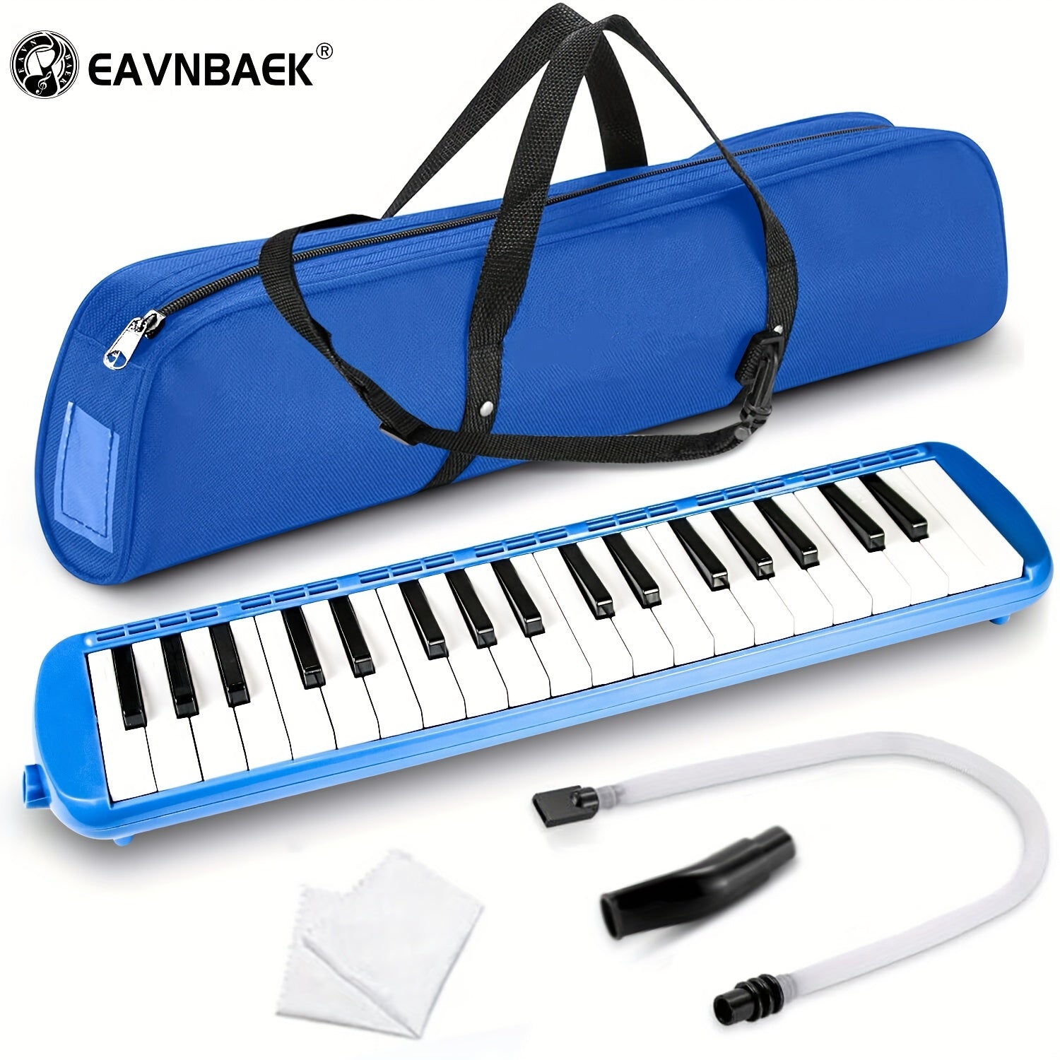 Eavanbaek 37-клавишная сопрано мелодика - портативное воздушное пиано с мягкой длинной трубкой, коротким мундштуком и сумкой для переноски - предлагается в черном/синем/розовом цветах