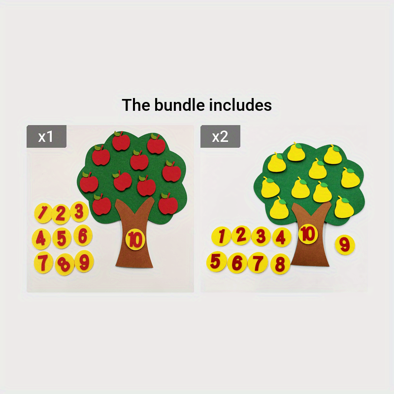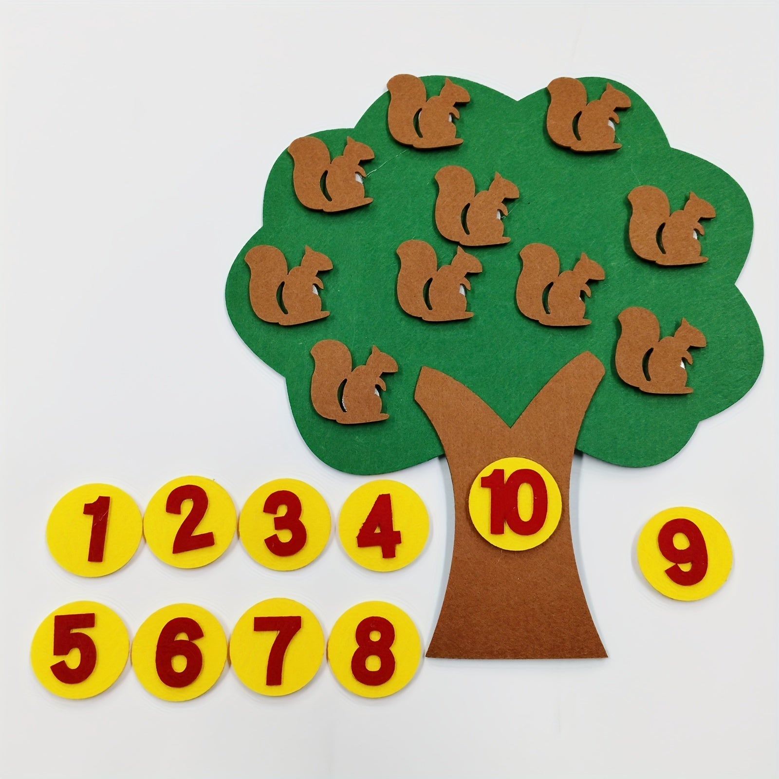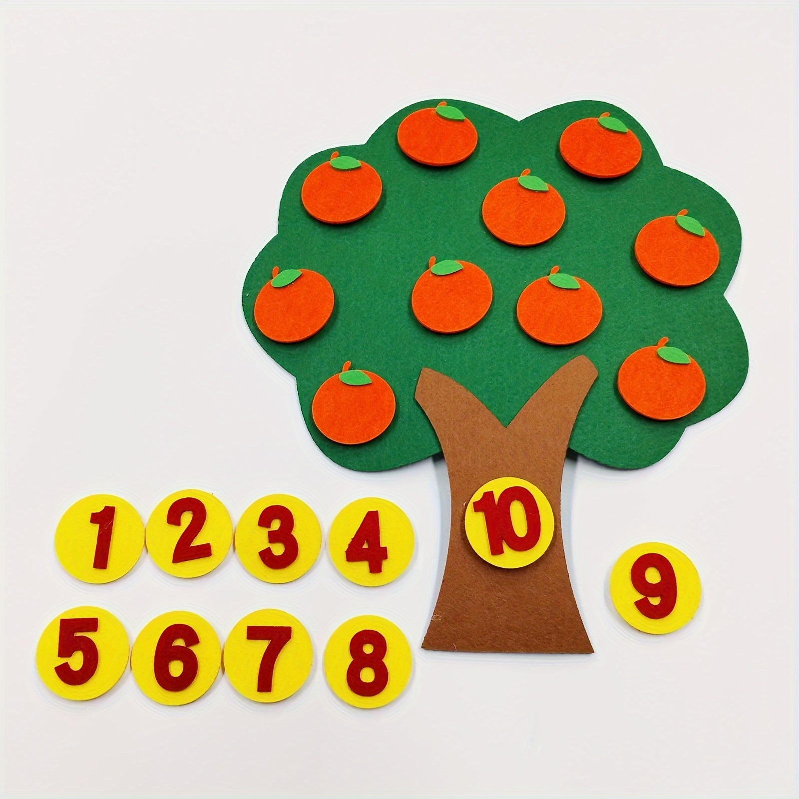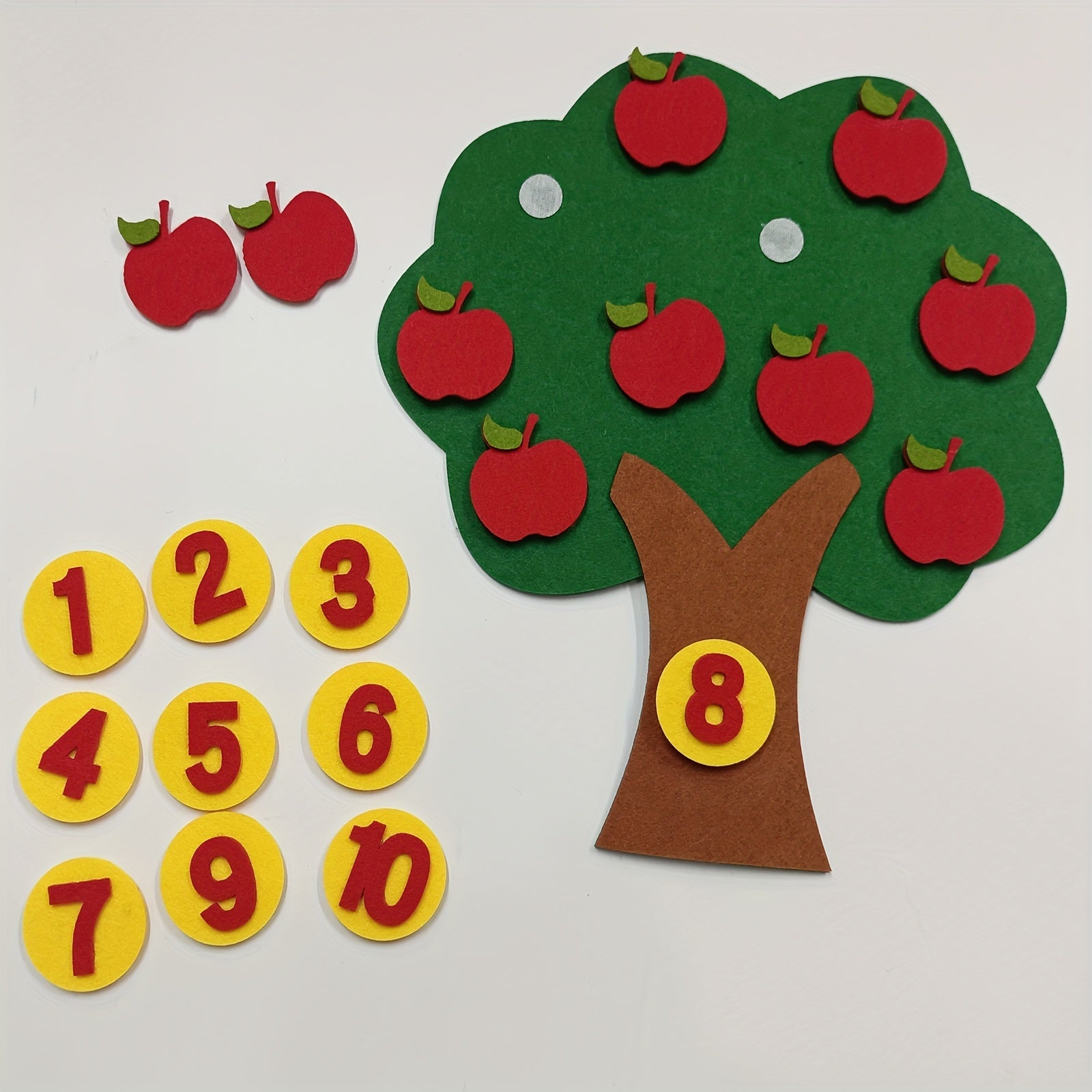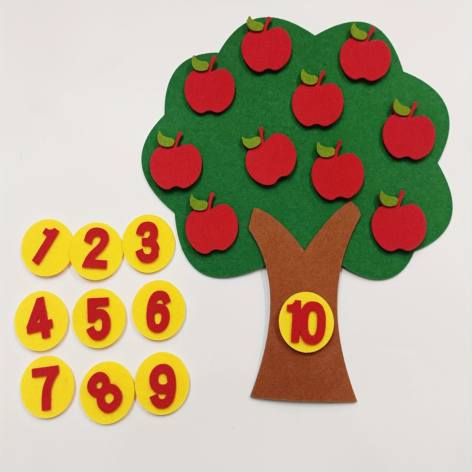 Образовательная фетровая доска "Яблоня" для изучения чисел, счета и математических игр для детей в детском саду и подготовительном классе, включает счетчики и манипулятивы для увлекательного практического обучения.
