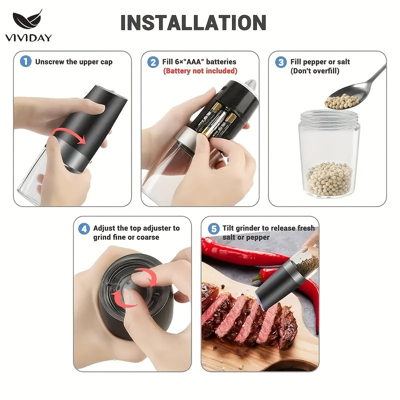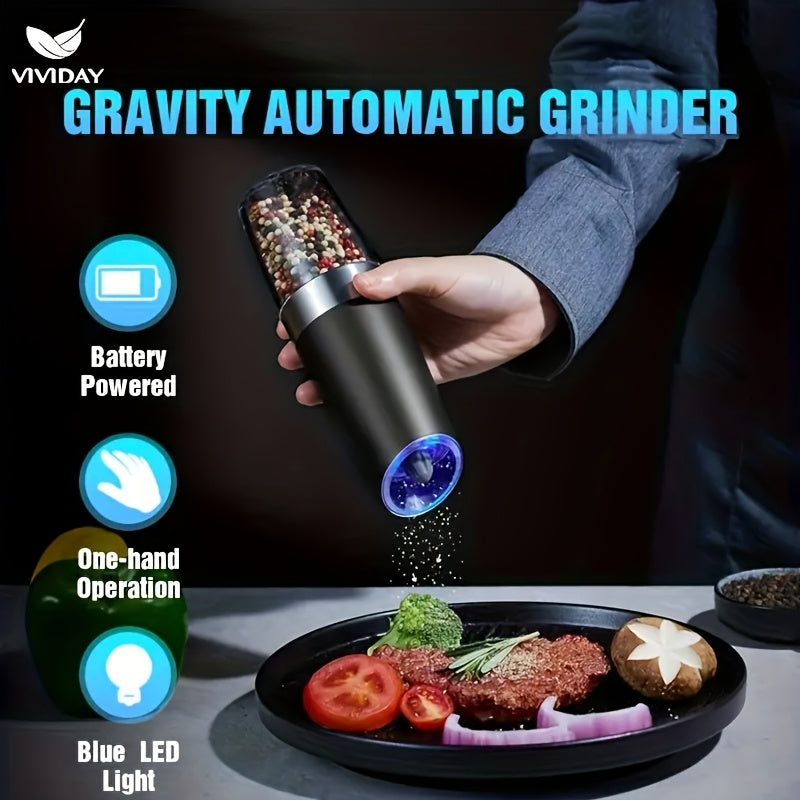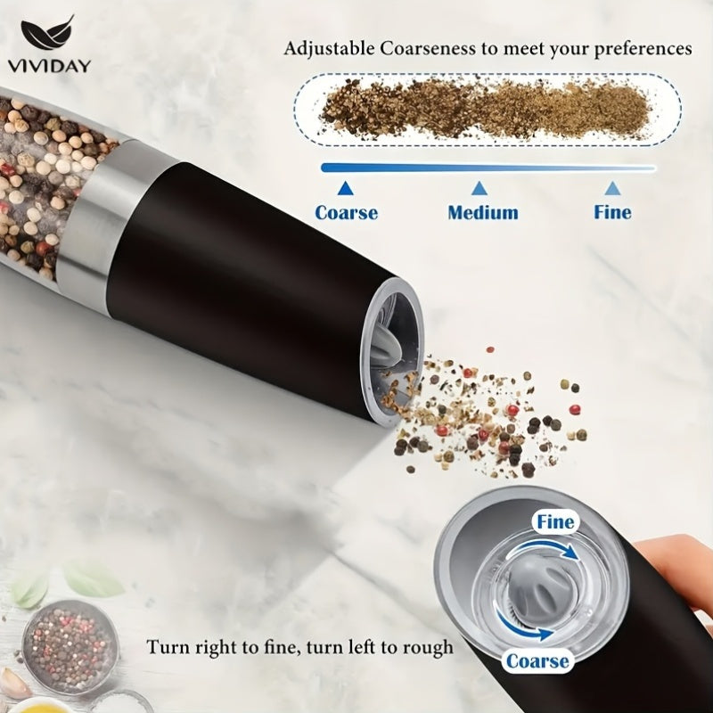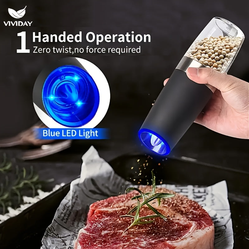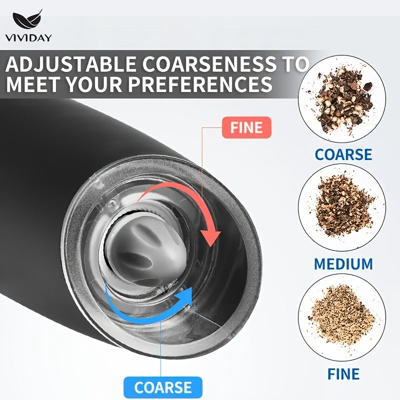 Электрическая кофемолка с технологией гравитации, светодиодной подсветкой, регулируемыми настройками для крупного и мелкого помола, портативная для черного перца, сычуаньского перца и морской соли