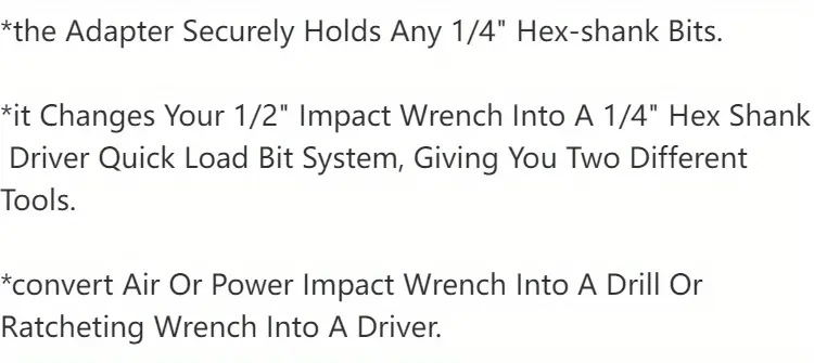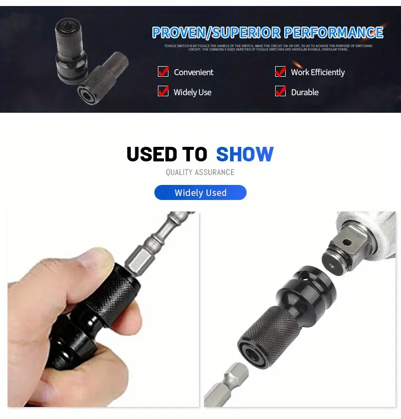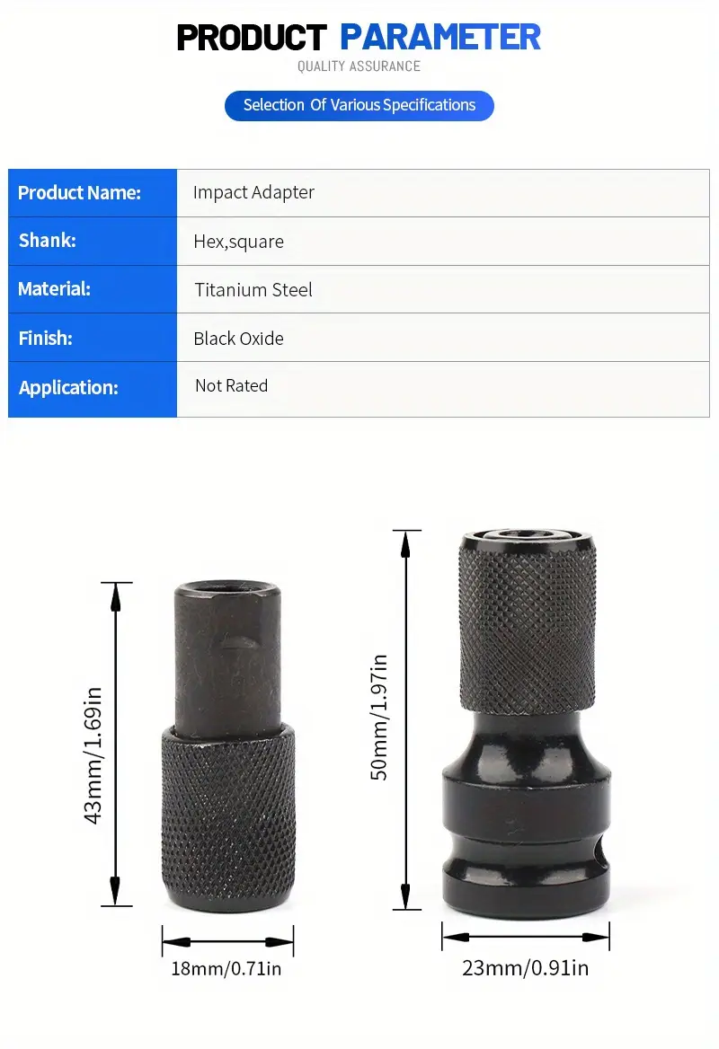 Электрический ключ-шуруповерт, конвертер головки, шестигранник 1/2, поворот 1/4, бит