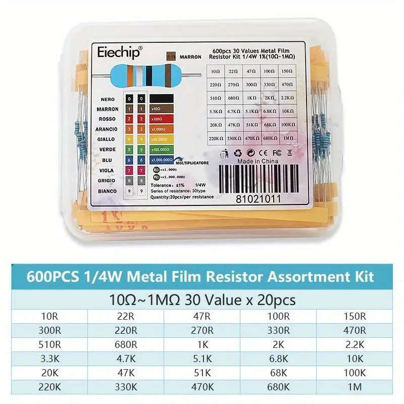 Набор резисторов для электроники DIY 300/600 шт. металлический фильм, допуск 1%, от 10 Ом до 1 М