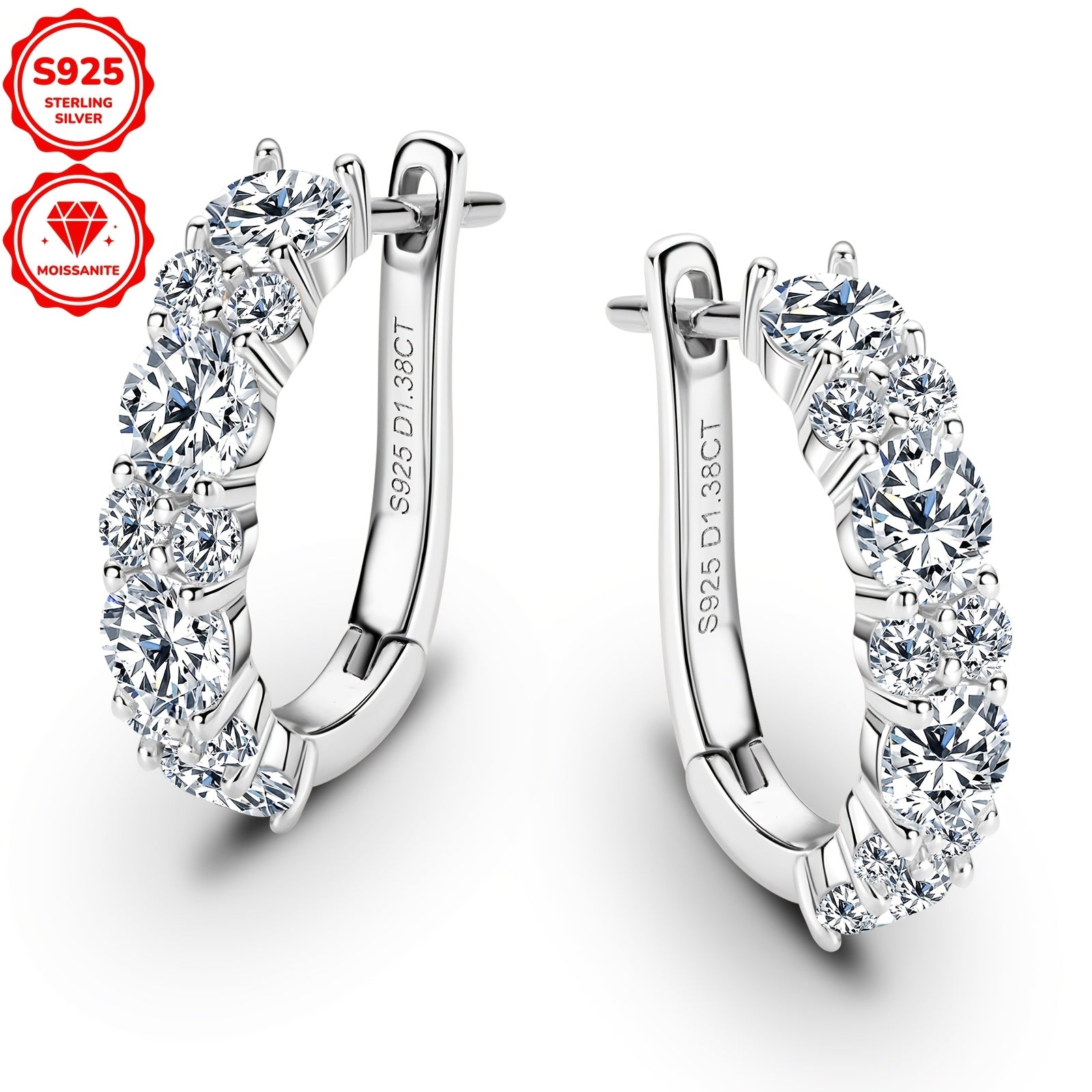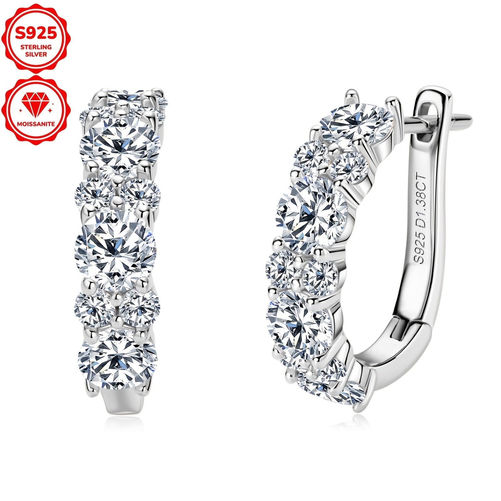 Элегантные и роскошные, эти серьги-кольца изготовлены из серебра 925 пробы, покрытого синтетическими камнями моиссанита. С золотым покрытием 14K, эти серьги имеют общий вес серебра 2,36 г и украшены камнями размером 4 мм и 2 мм, общим весом 1,38 карата.