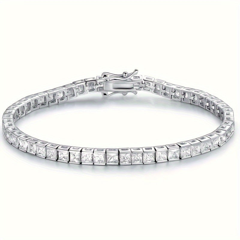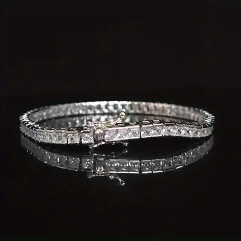 Серебряный браслет-теннис с моиссанитом в квадратной форме для женщин
