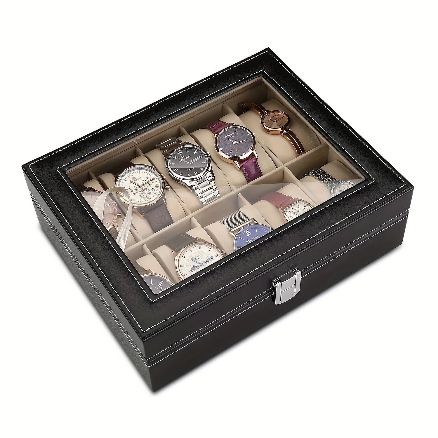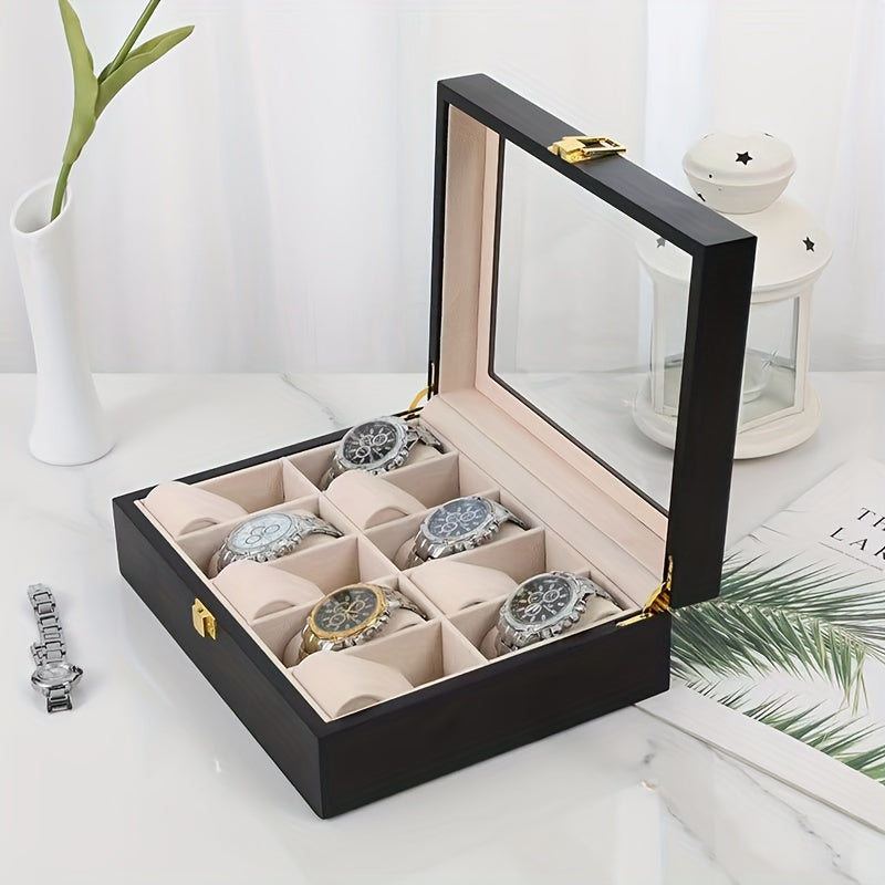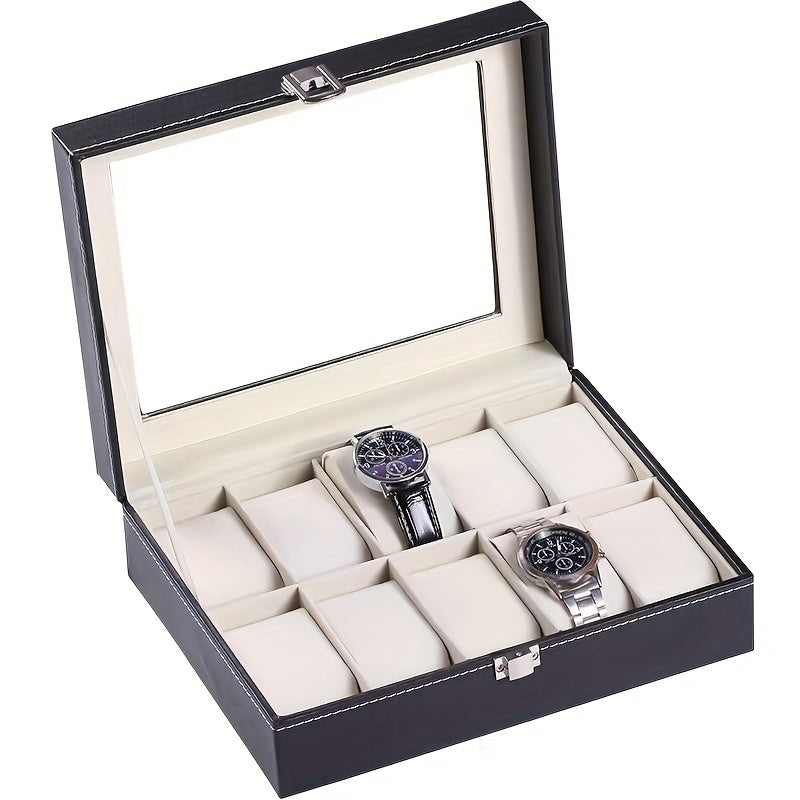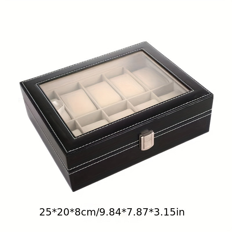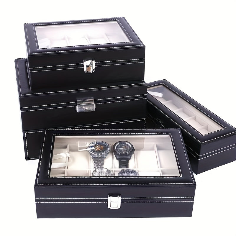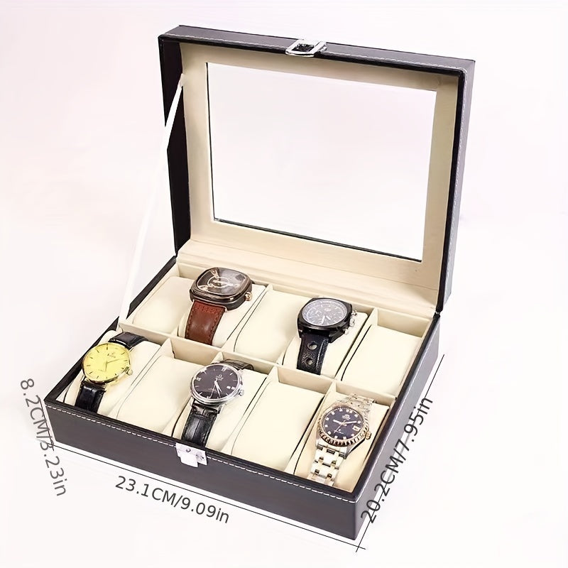 Элегантная черная PU кожаная шкатулка для хранения часов и украшений с пылезащитным прозрачным покрытием на 6/10 слотов, оснащенная замком - идеальный выбор подарка