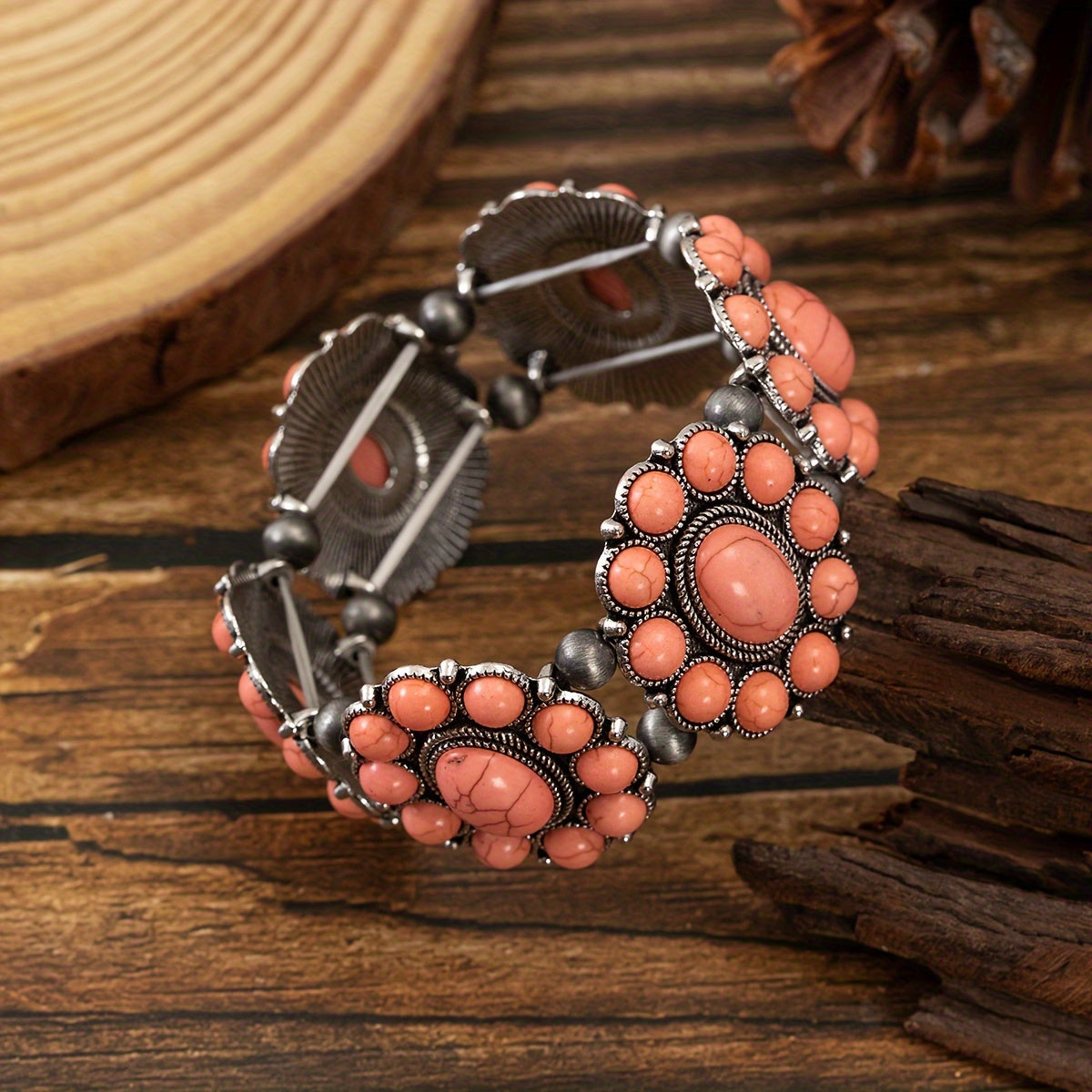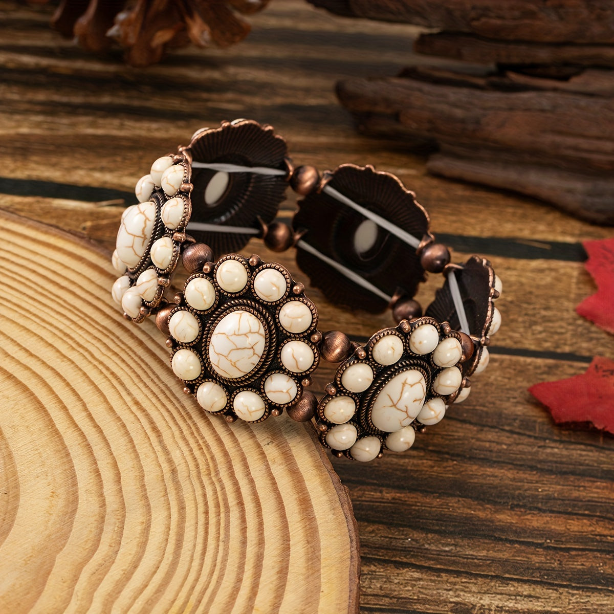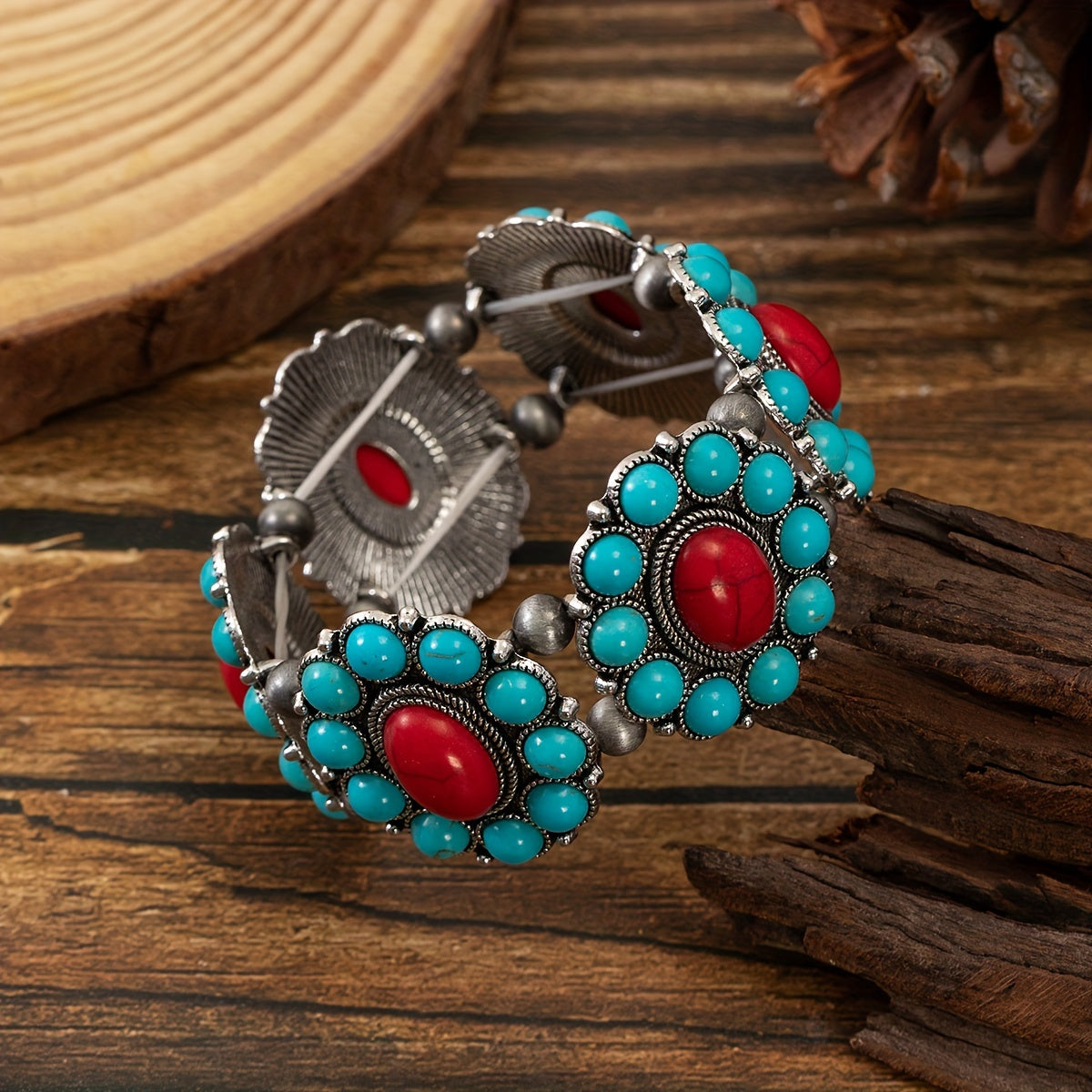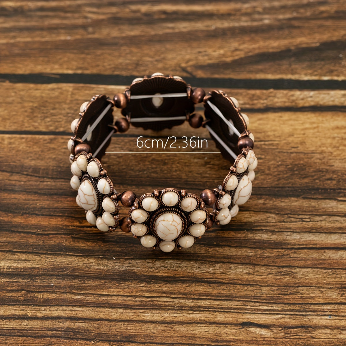 Элегантный богемный эластичный браслет из бусин с бирюзой, винтажный растягивающийся браслет для повседневной носки женщин