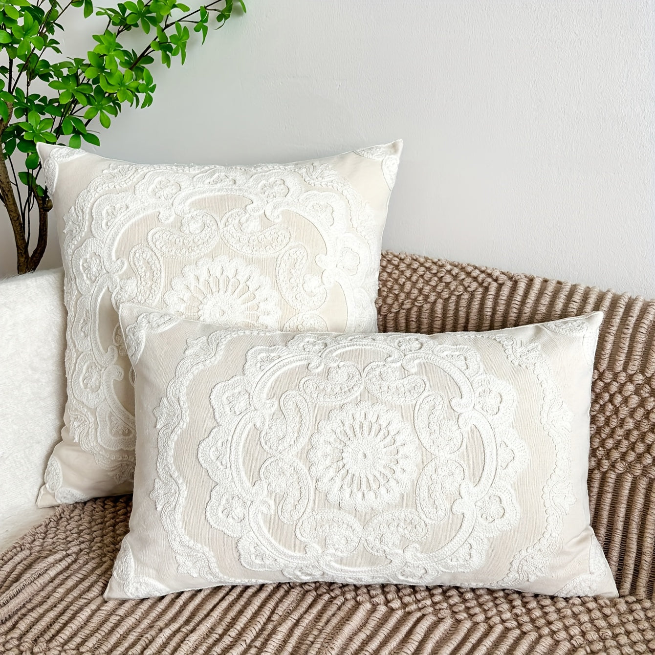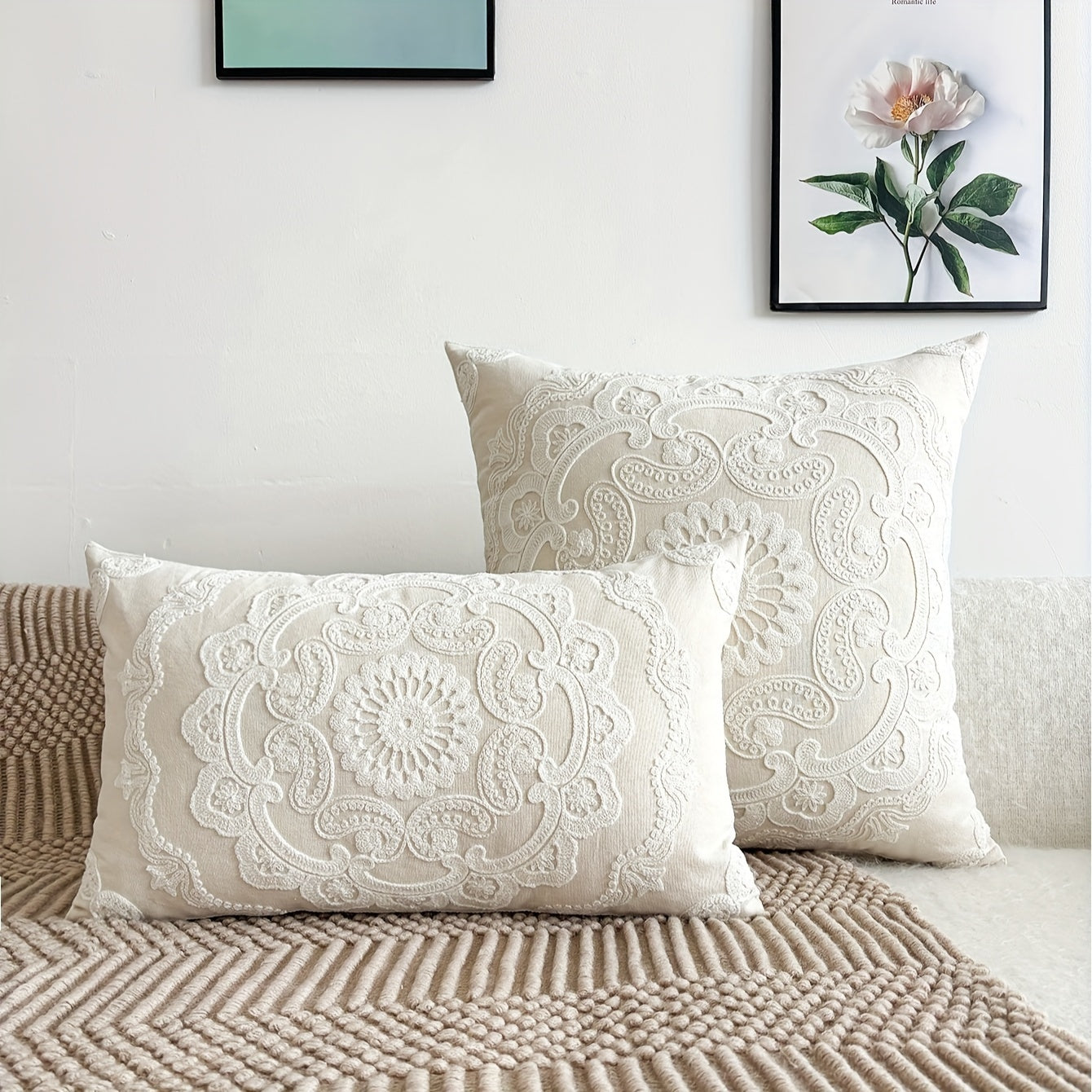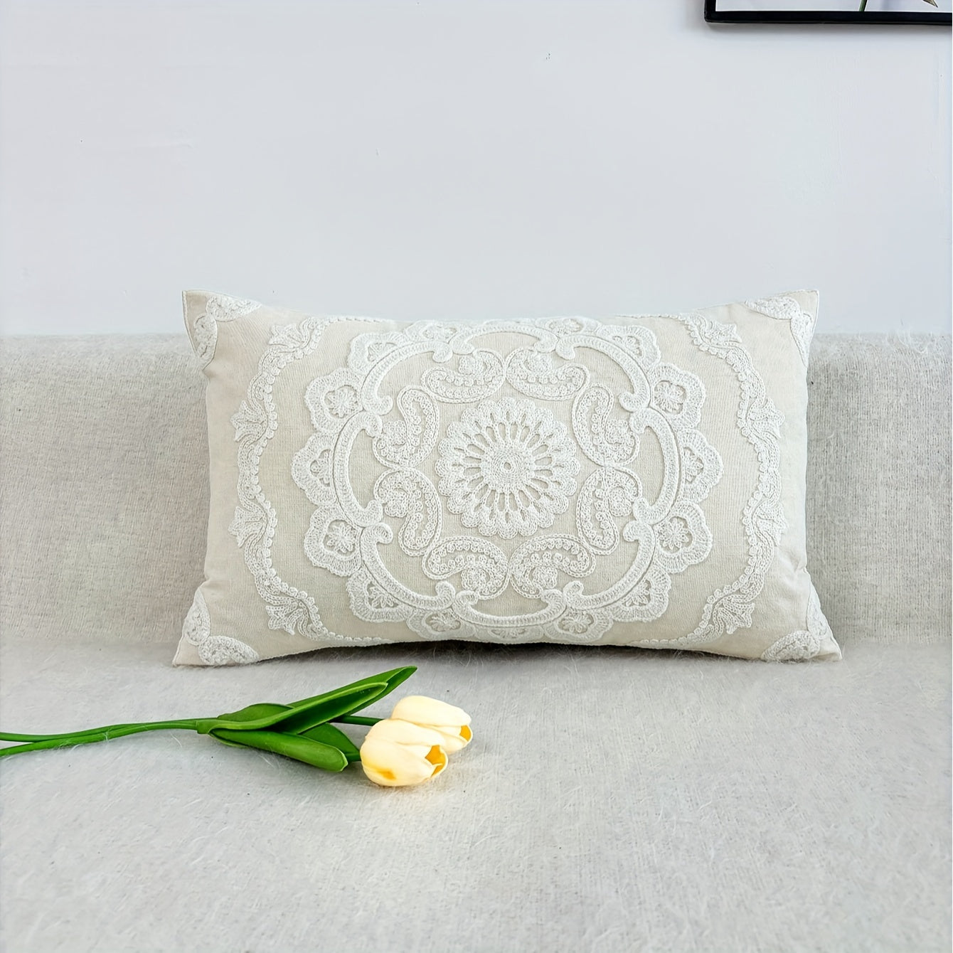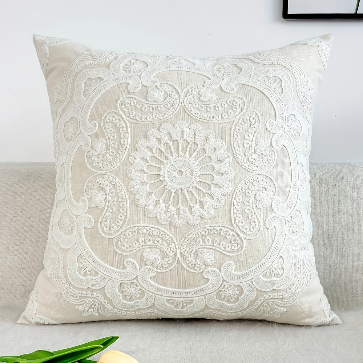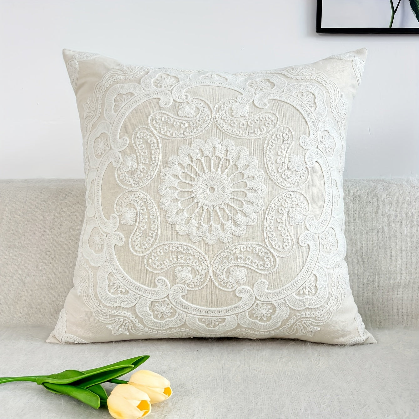 Элегантная круглая наволочка для подушки с вышивкой в цветочном стиле в традиционном исполнении. Машинная стирка, с застежкой на молнии. Идеально подходит для декора комнаты. Вставка для подушки не включена.