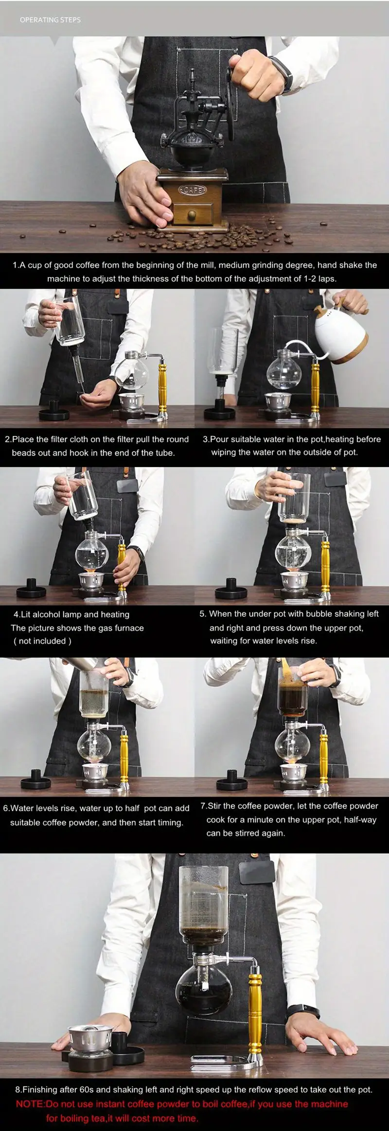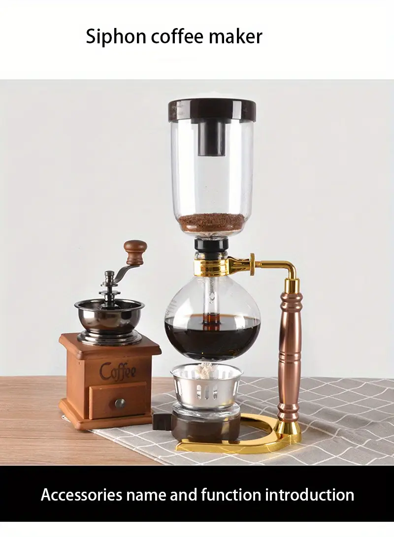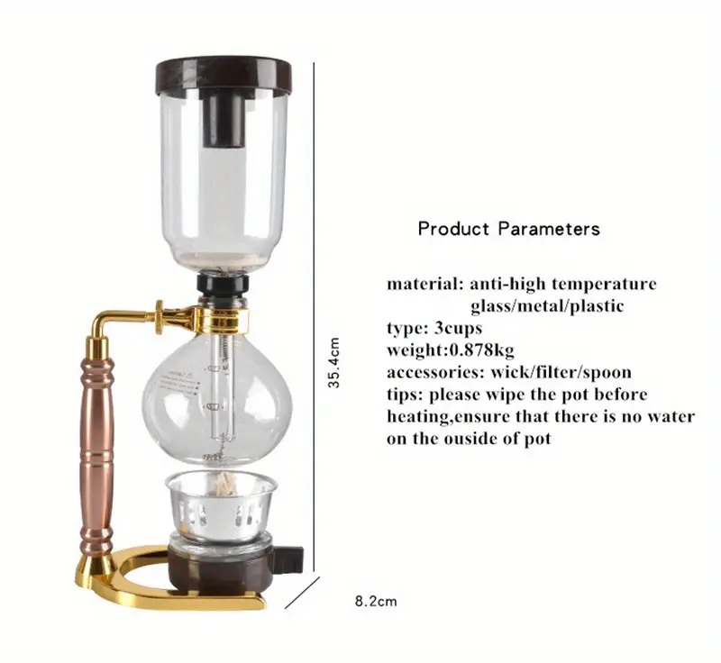 Элегантный стеклянный кофейник с вакуумным сифоном на 3 чашки с ложкой и щеткой
