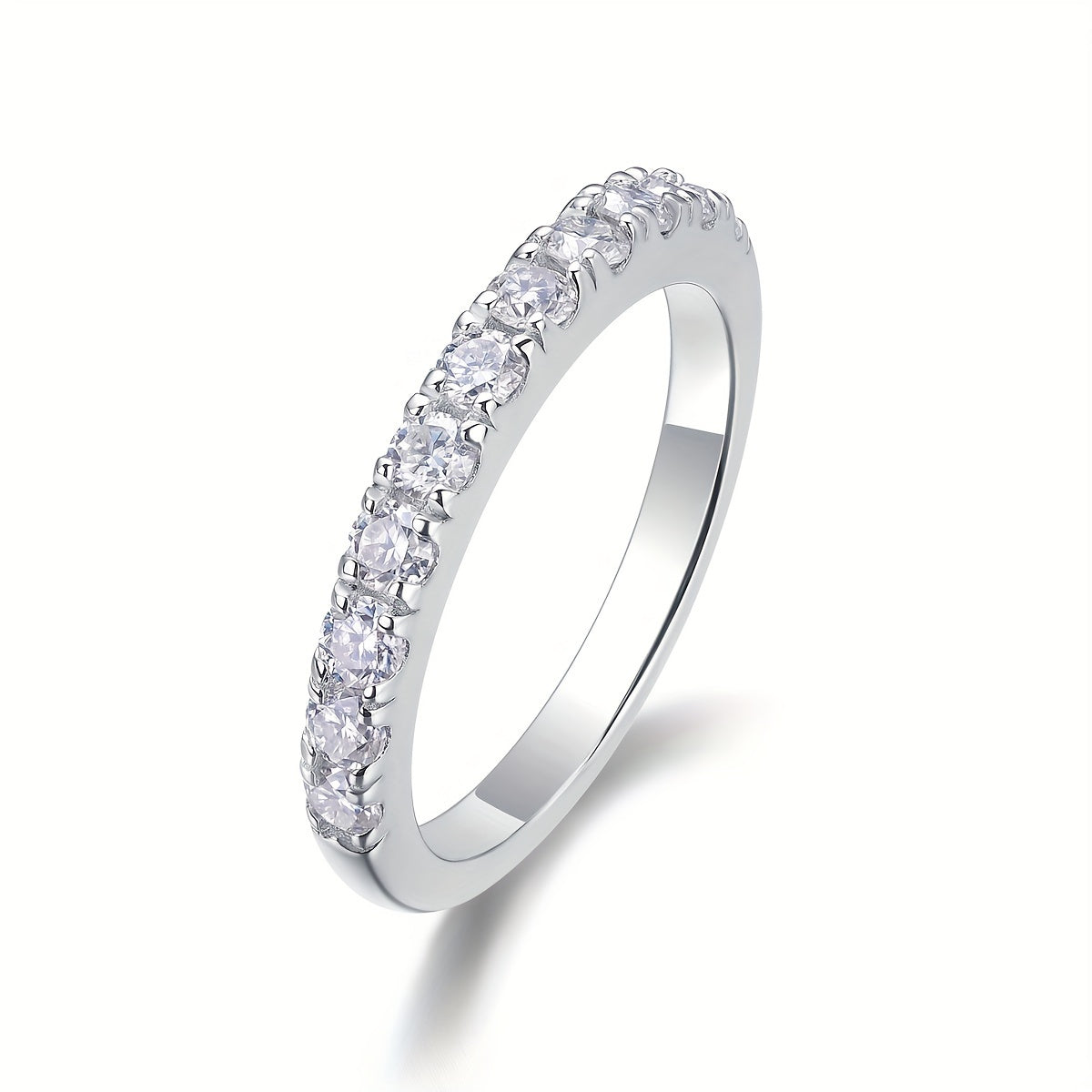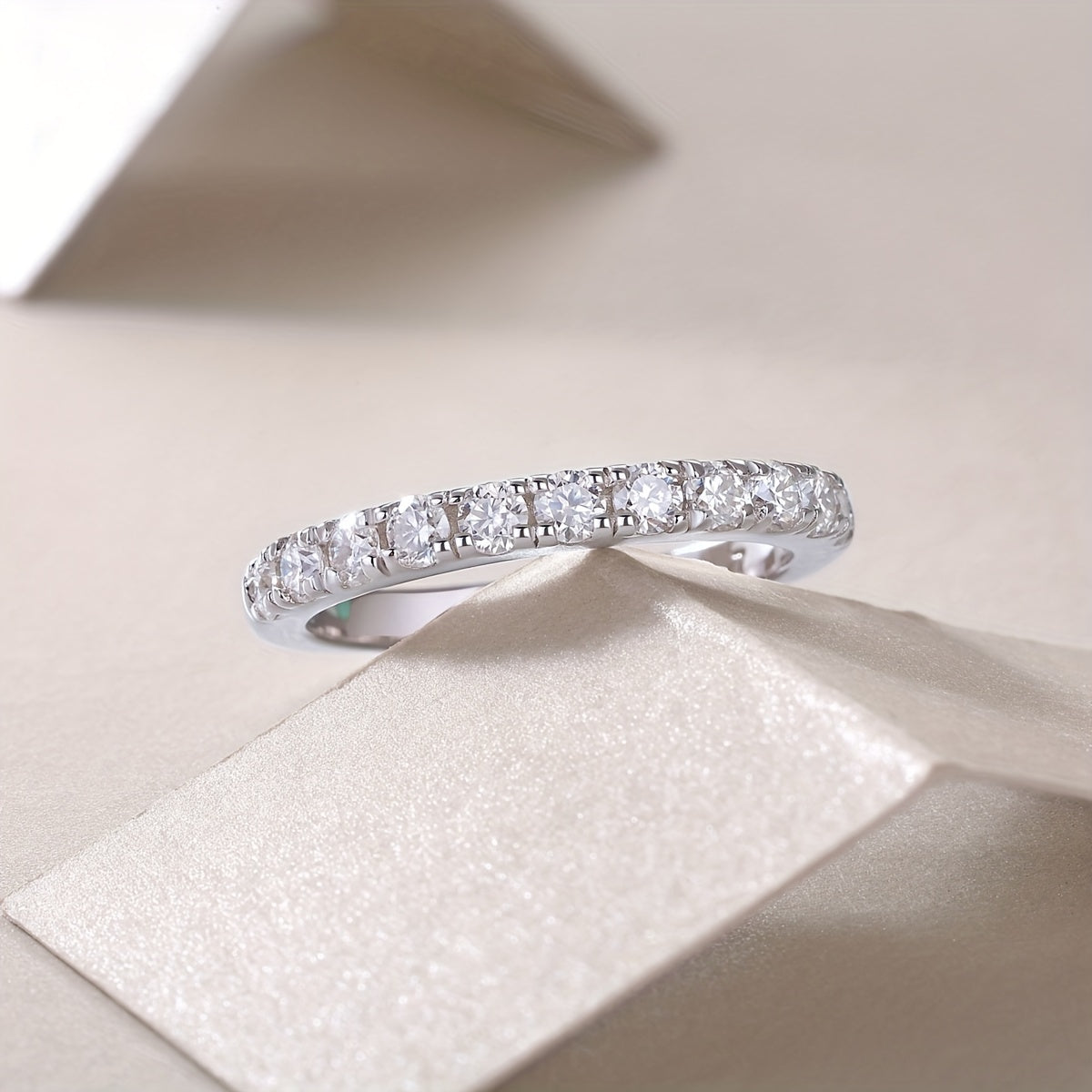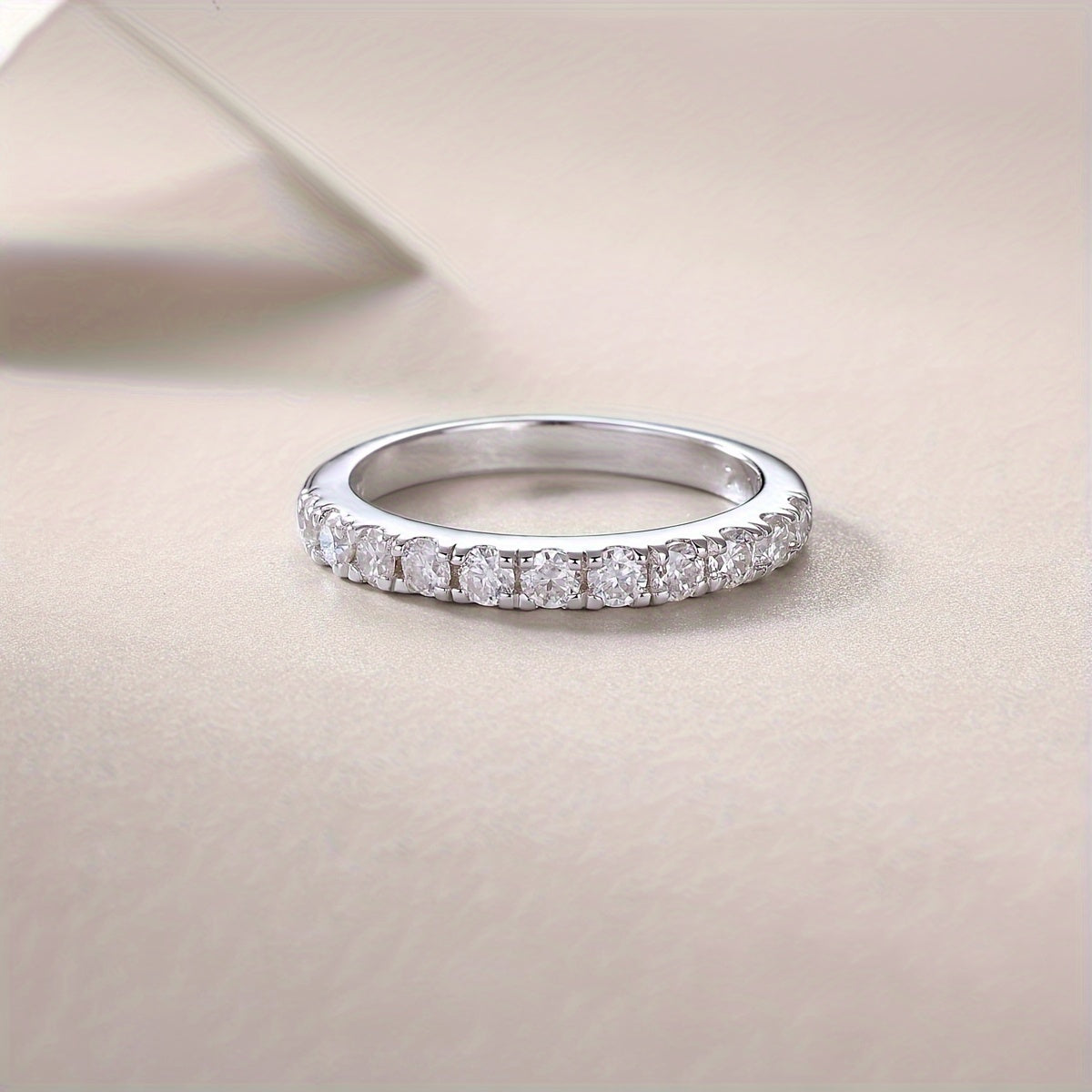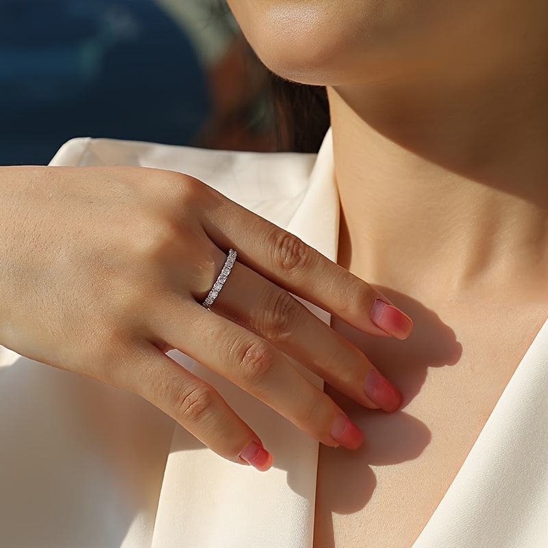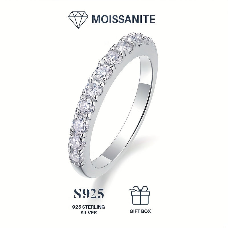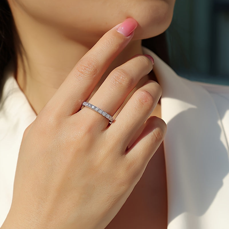 Элегантное кольцо с тонким ободком из моиссанита в серебре 925 пробы, блестящее и с инкрустацией, в подарочной коробке