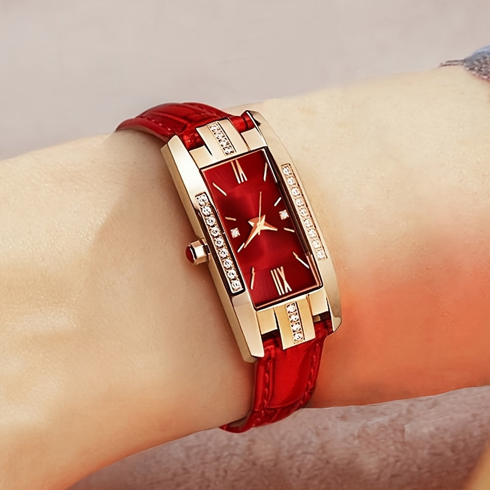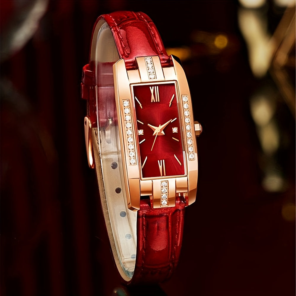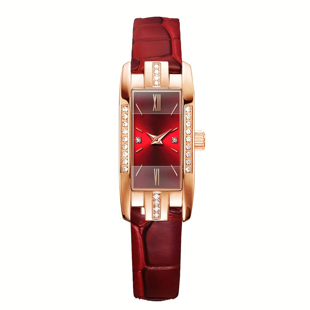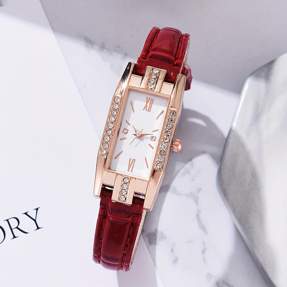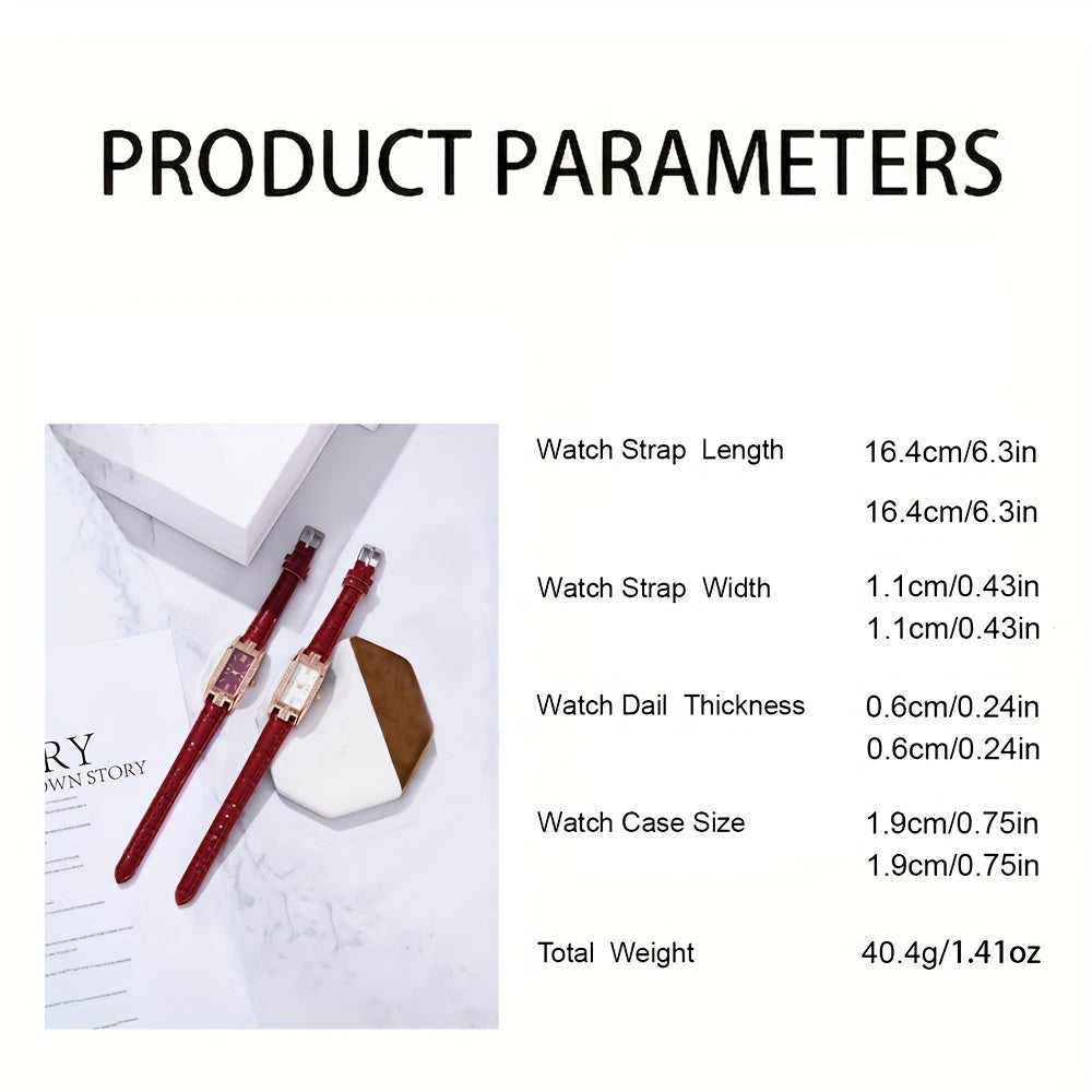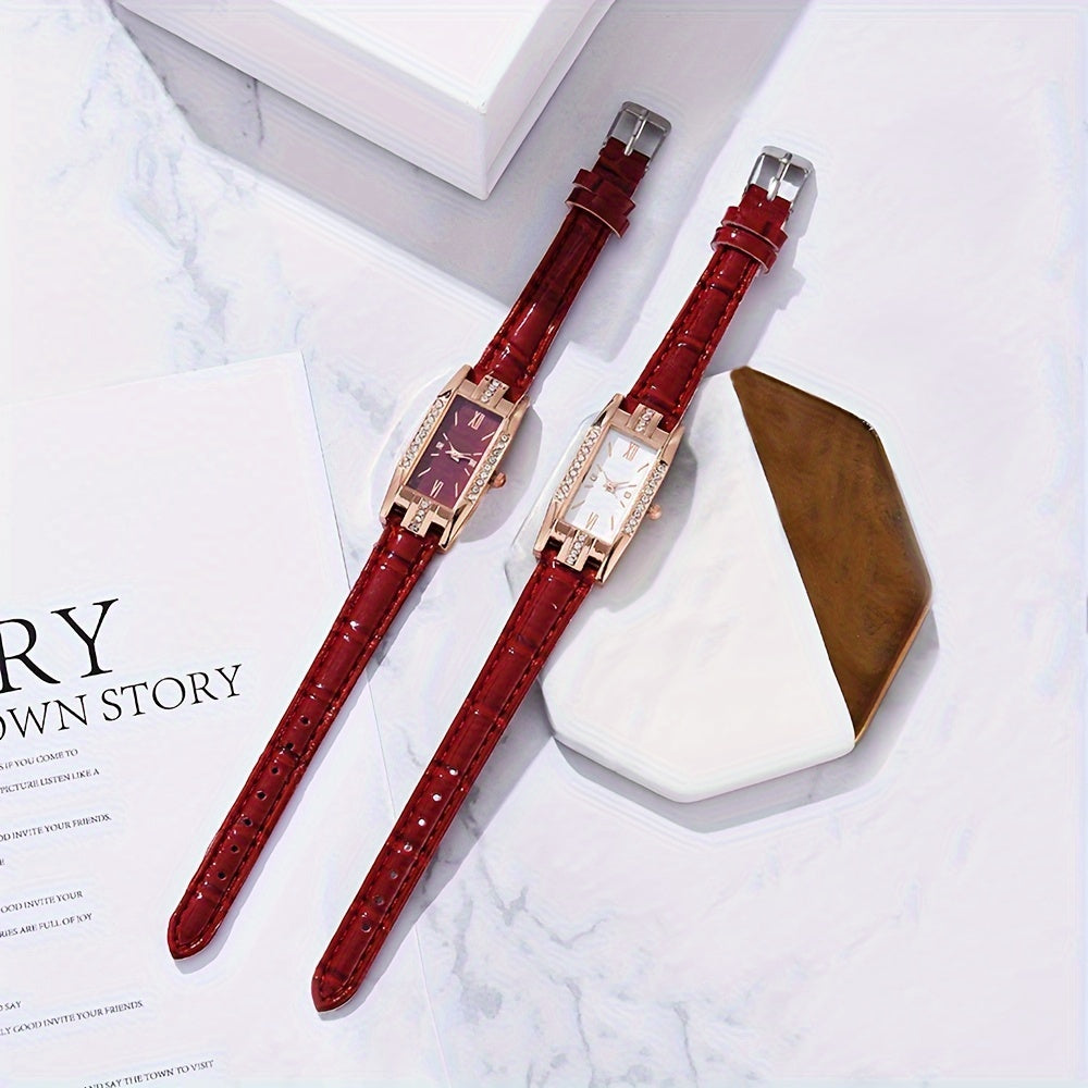 Женские прямоугольные аналоговые кожаные наручные часы с rhinestones, 2 шт.