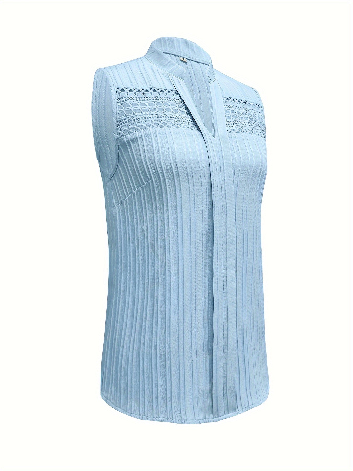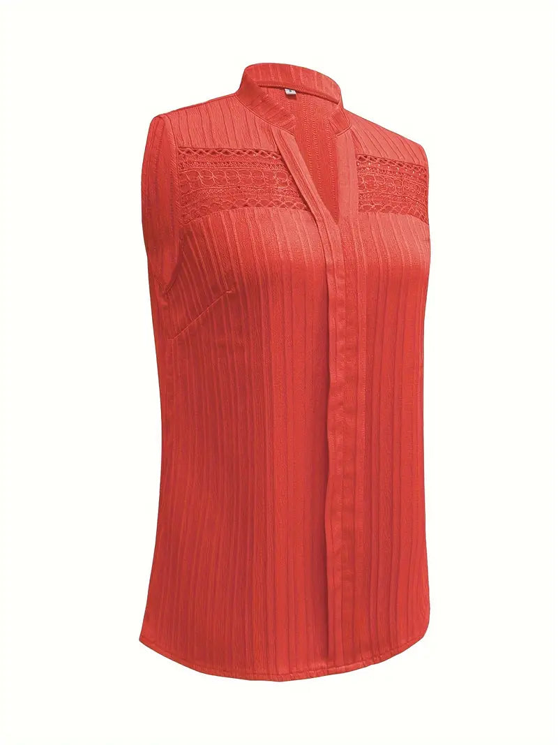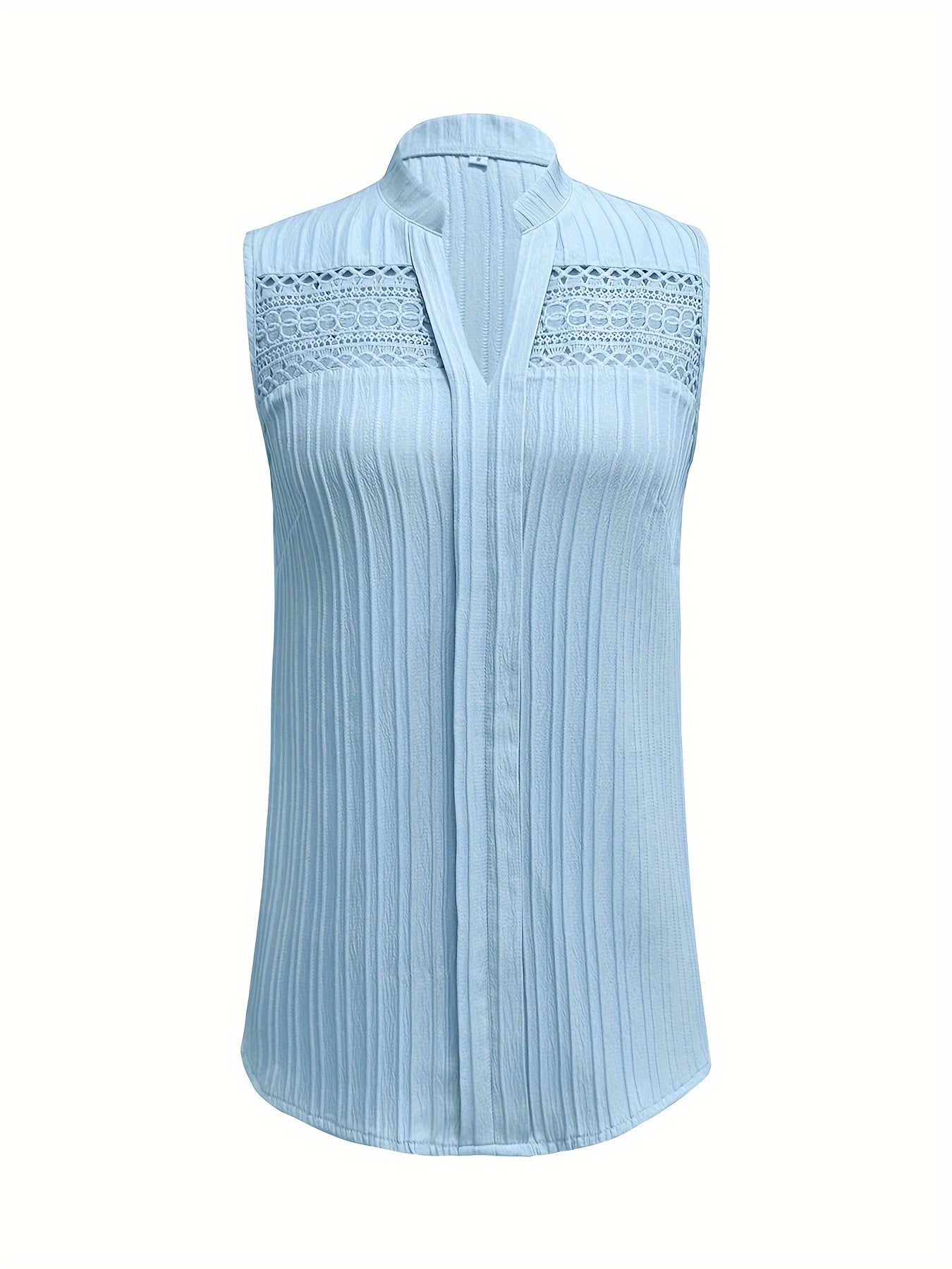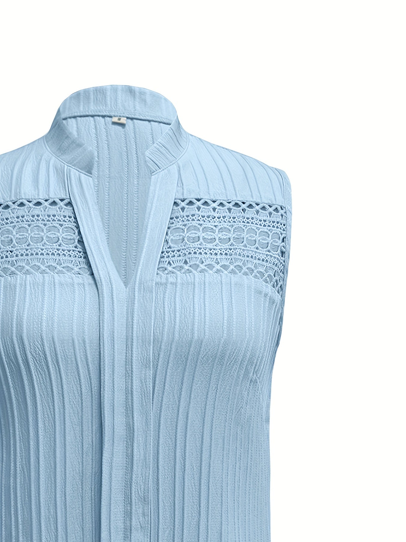 Элегантный безрукавный кружевной топ с V-образным вырезом для весны и лета.