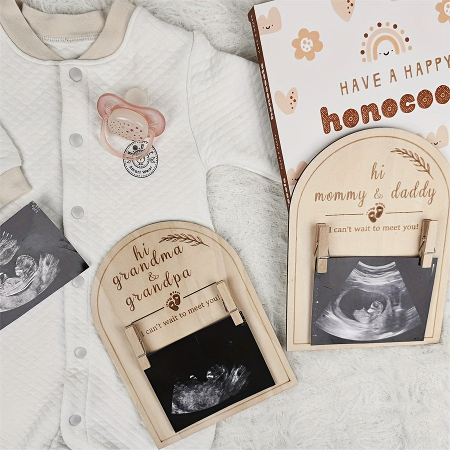Элегантная деревянная фоторамка для ультразвука - двусторонний сувенир для детей, идеальный подарок для родителей и бабушек с дедушками, комплект для объявления о рождении с отпечатком ноги в комплекте