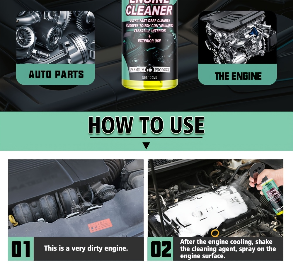 Очиститель двигателя в виде спрея для автомобилей 3-в-1 Обесцвечивание, окисление, удаление грязи