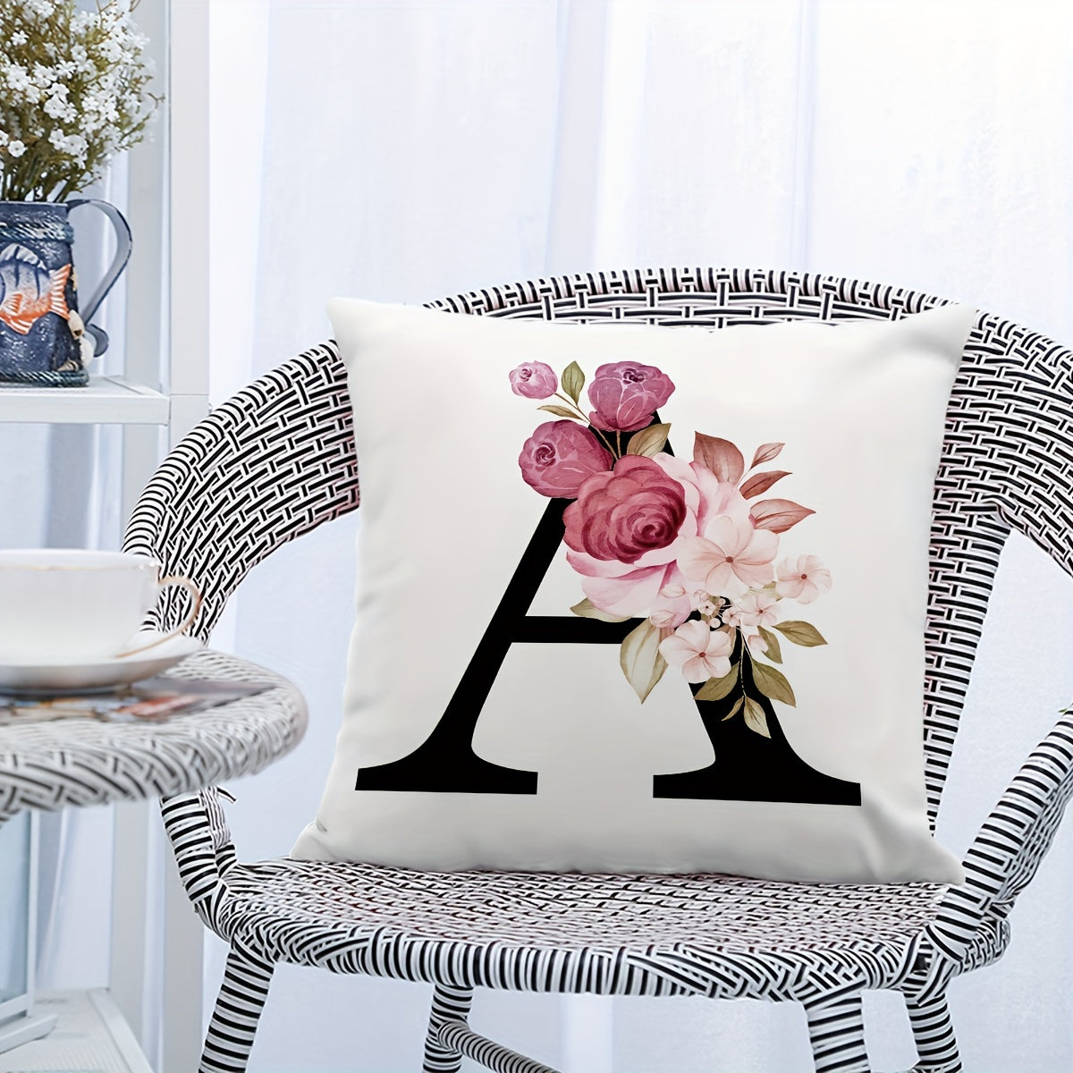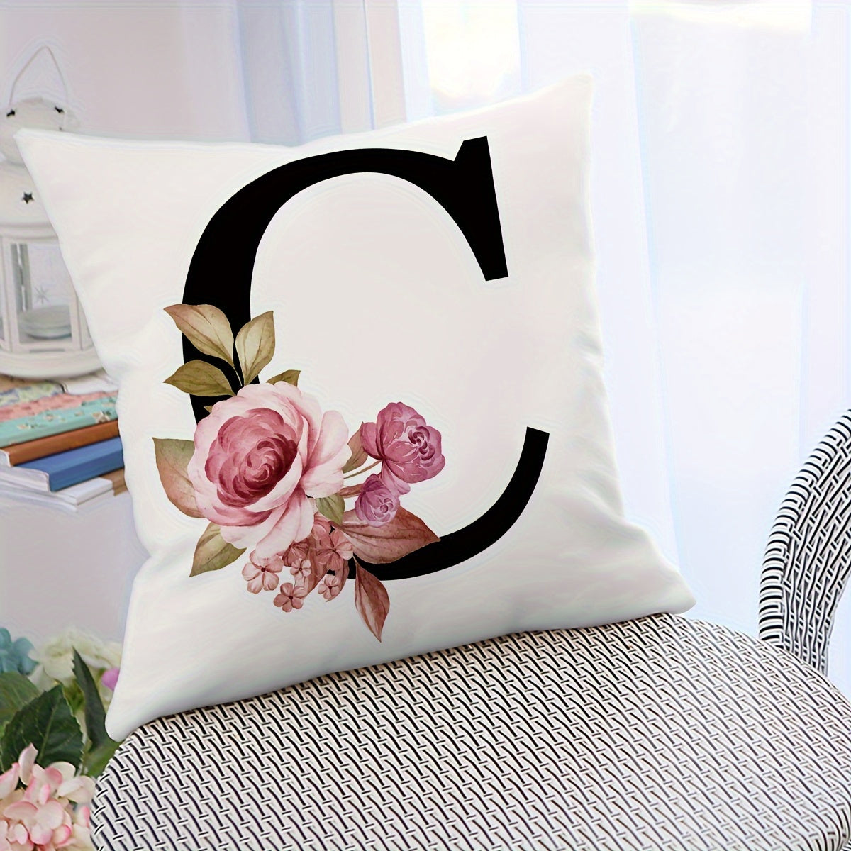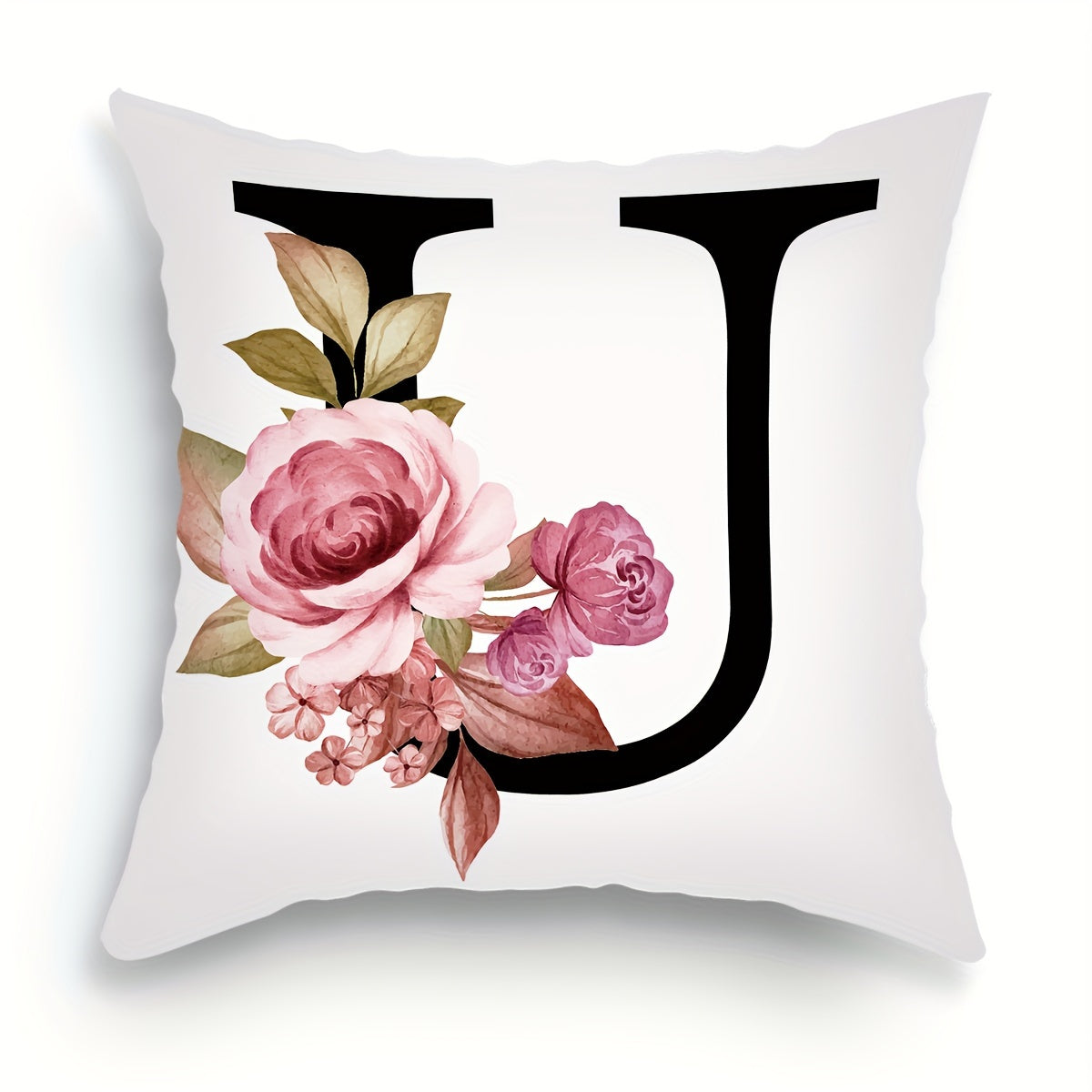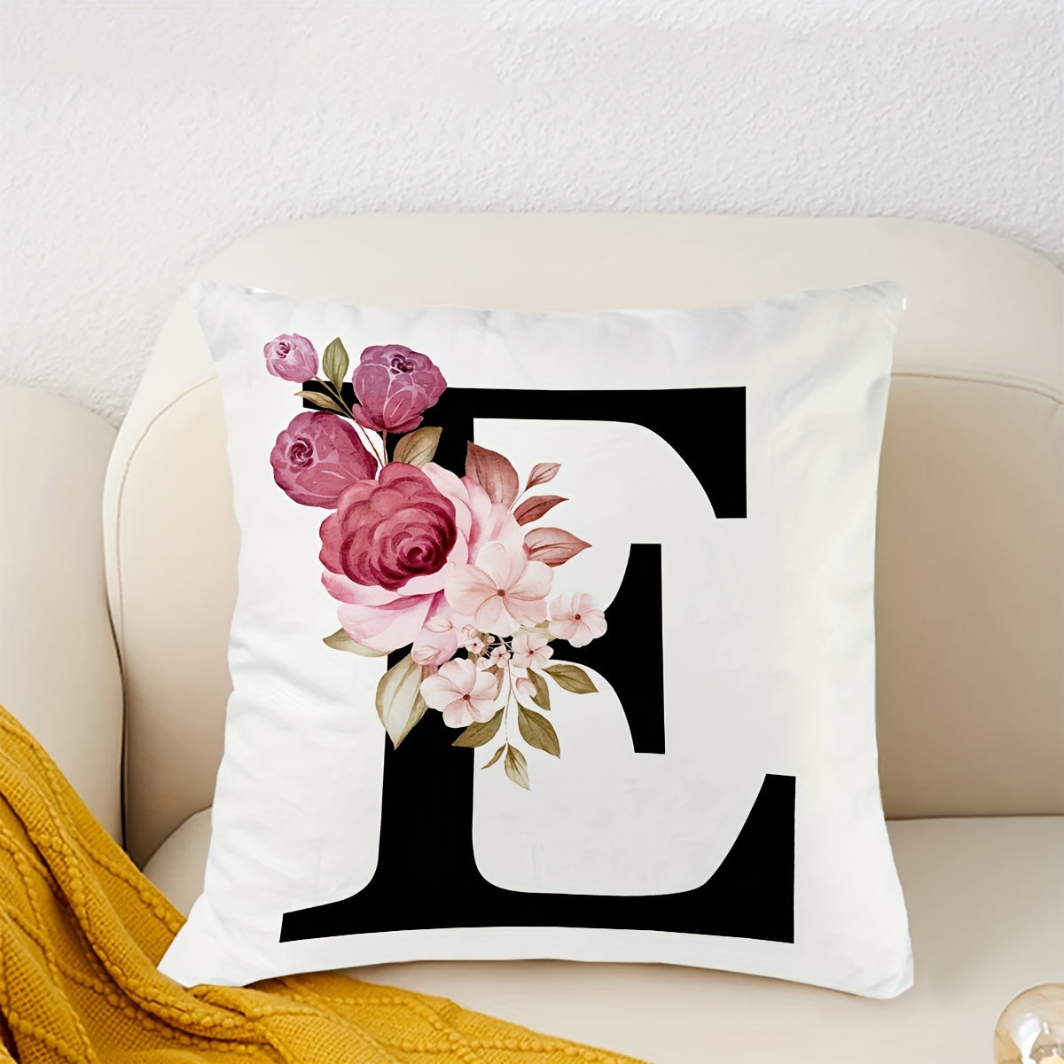 Подушка с цветочным принтом и английскими буквами для диванных подушек, 45.72 см x 45.72 см.
