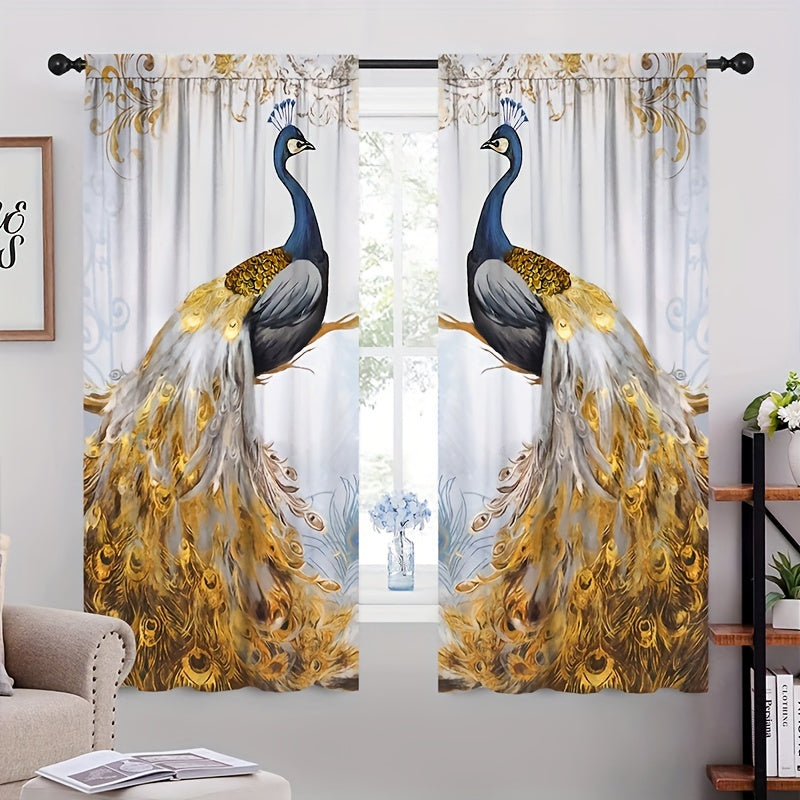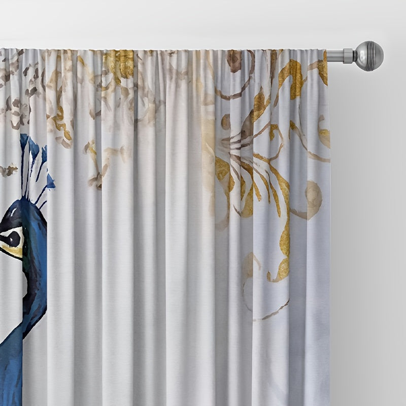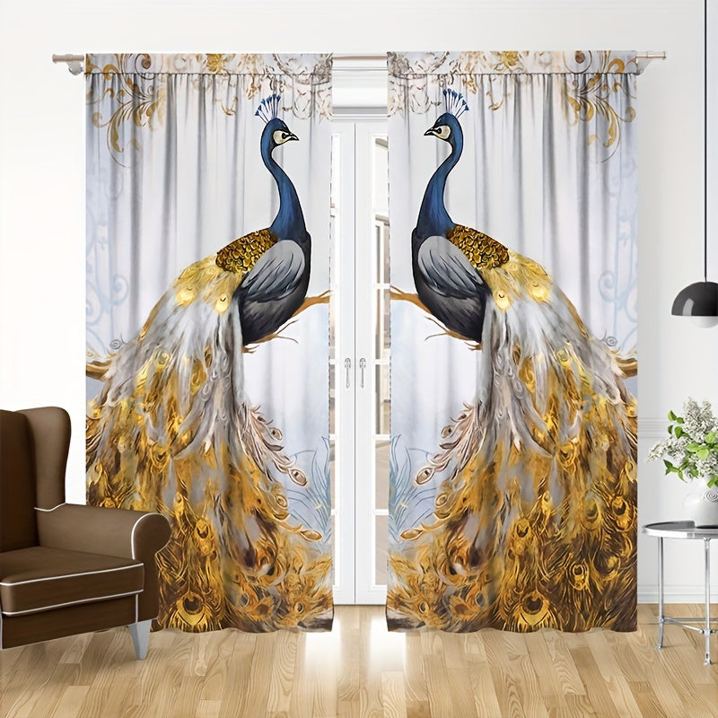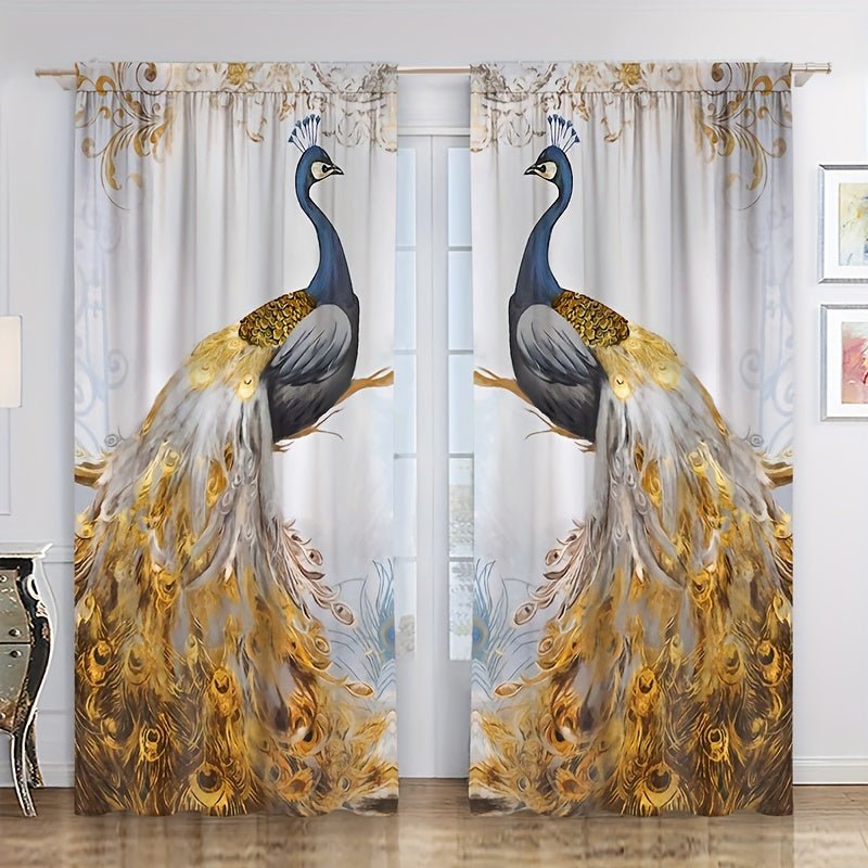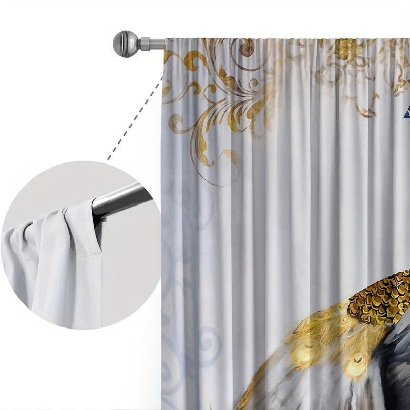 Увеличьте элегантность вашего дома с этими шторами с принтом золотого пера павлина в комплекте из 2 штук!