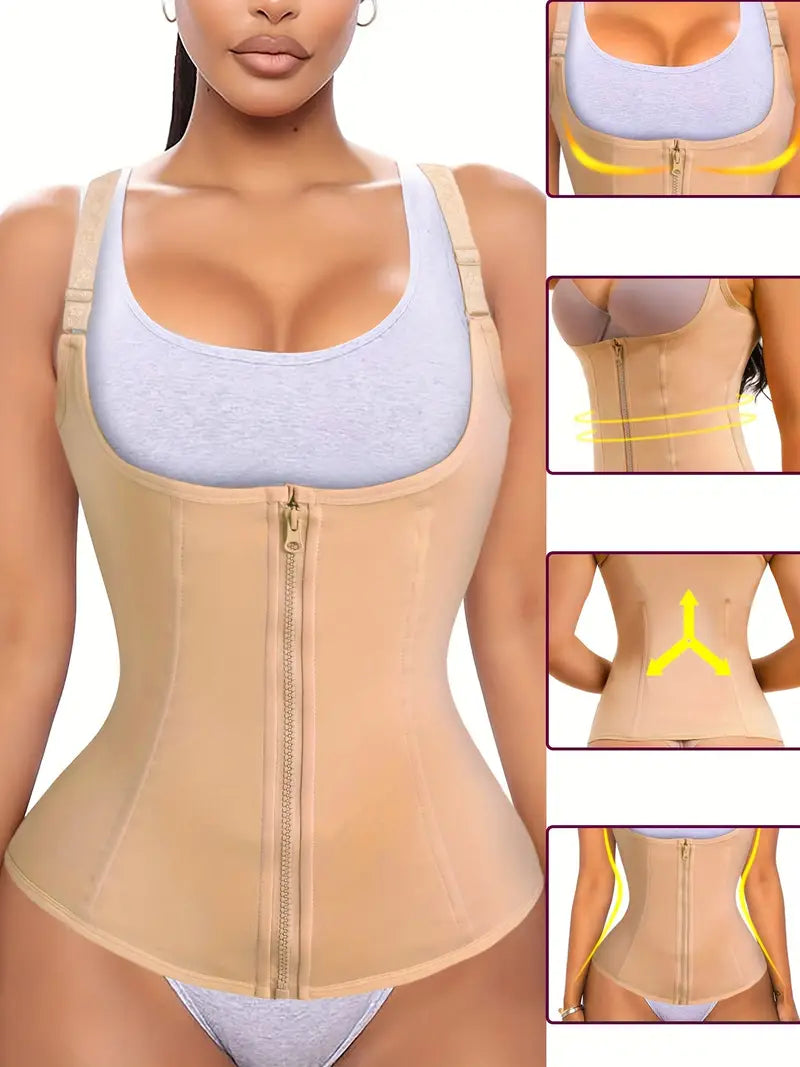 Улучшите свои формы и определите линию талии с помощью черного топа с молнией Junlan для женщин. Этот тренажер для талии имеет контроль живота и открытый дизайн бюста для эффекта стройности. Изготовлено