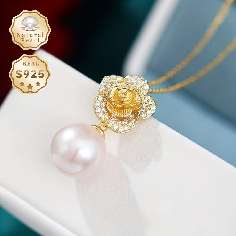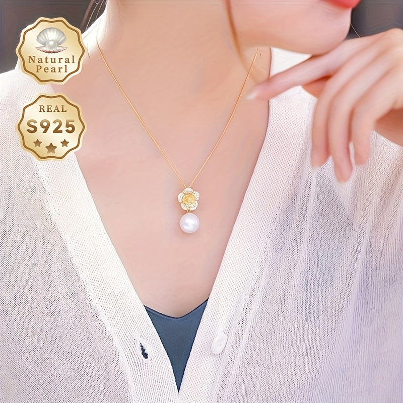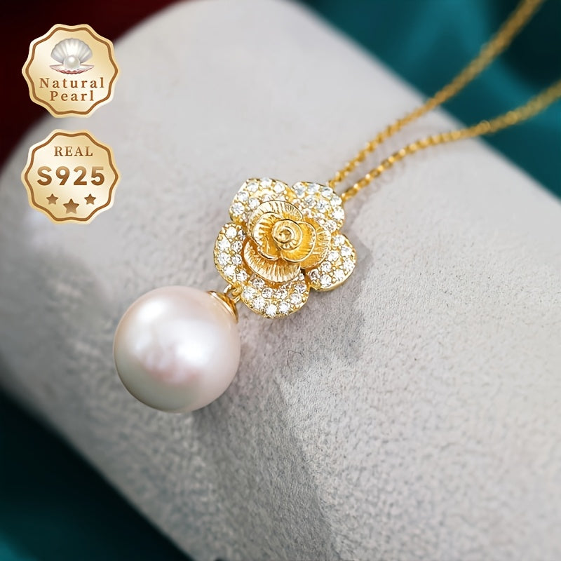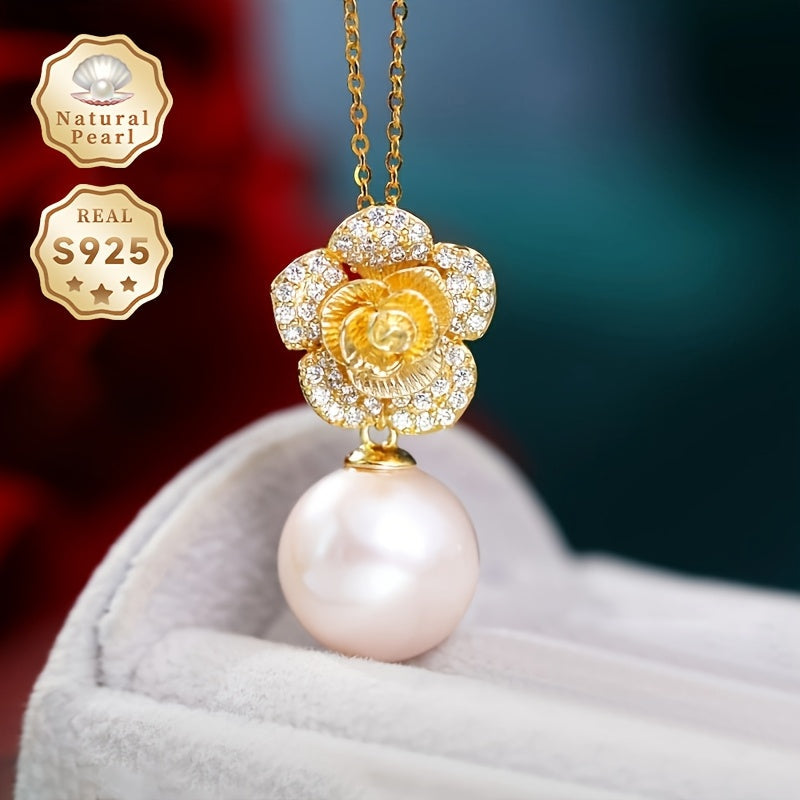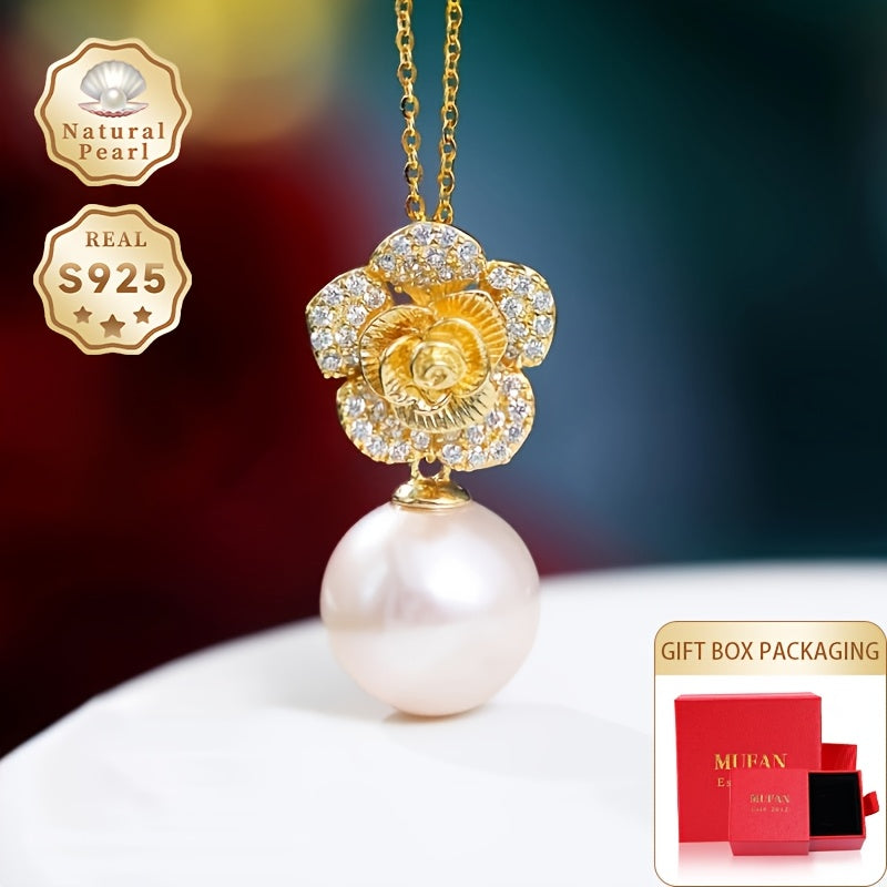 Женское жемчужное ожерелье с цветочным дизайном из серебра S925, 12-13 мм пресноводный жемчуг