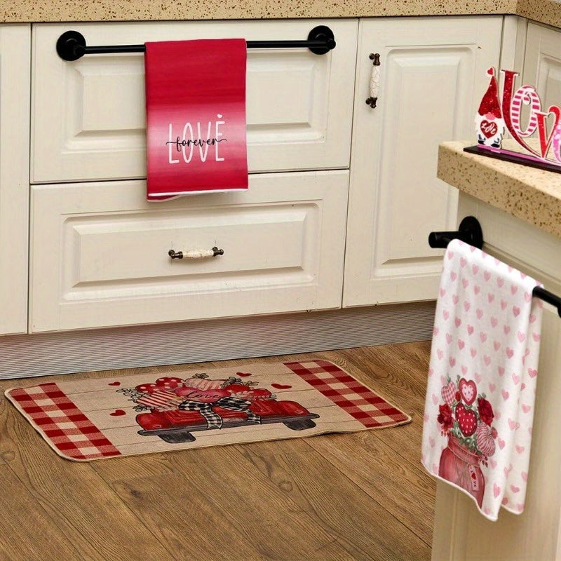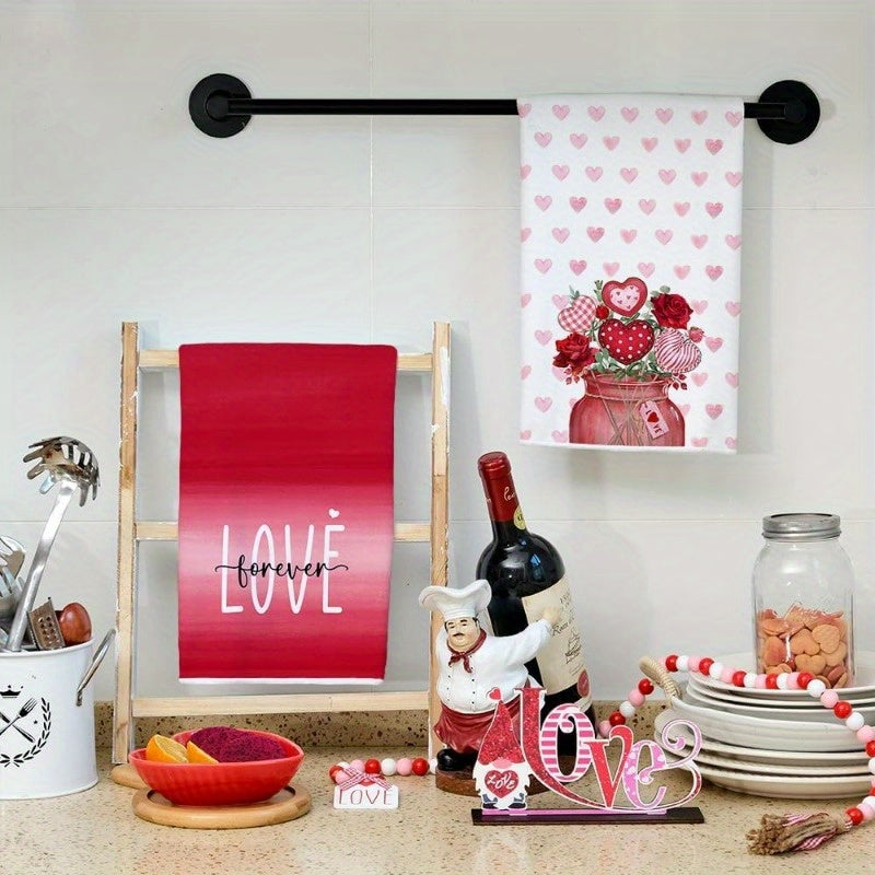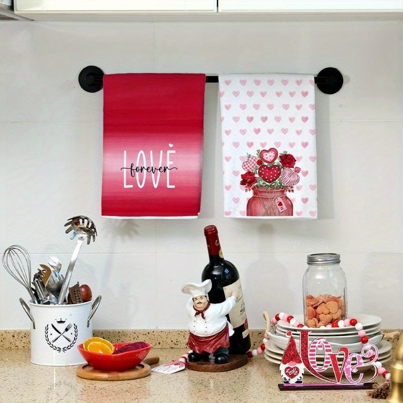 Набор из 2 кухонных полотенец с розовыми розами и любовной вазой, 18x66 см, для сушки посуды и декора