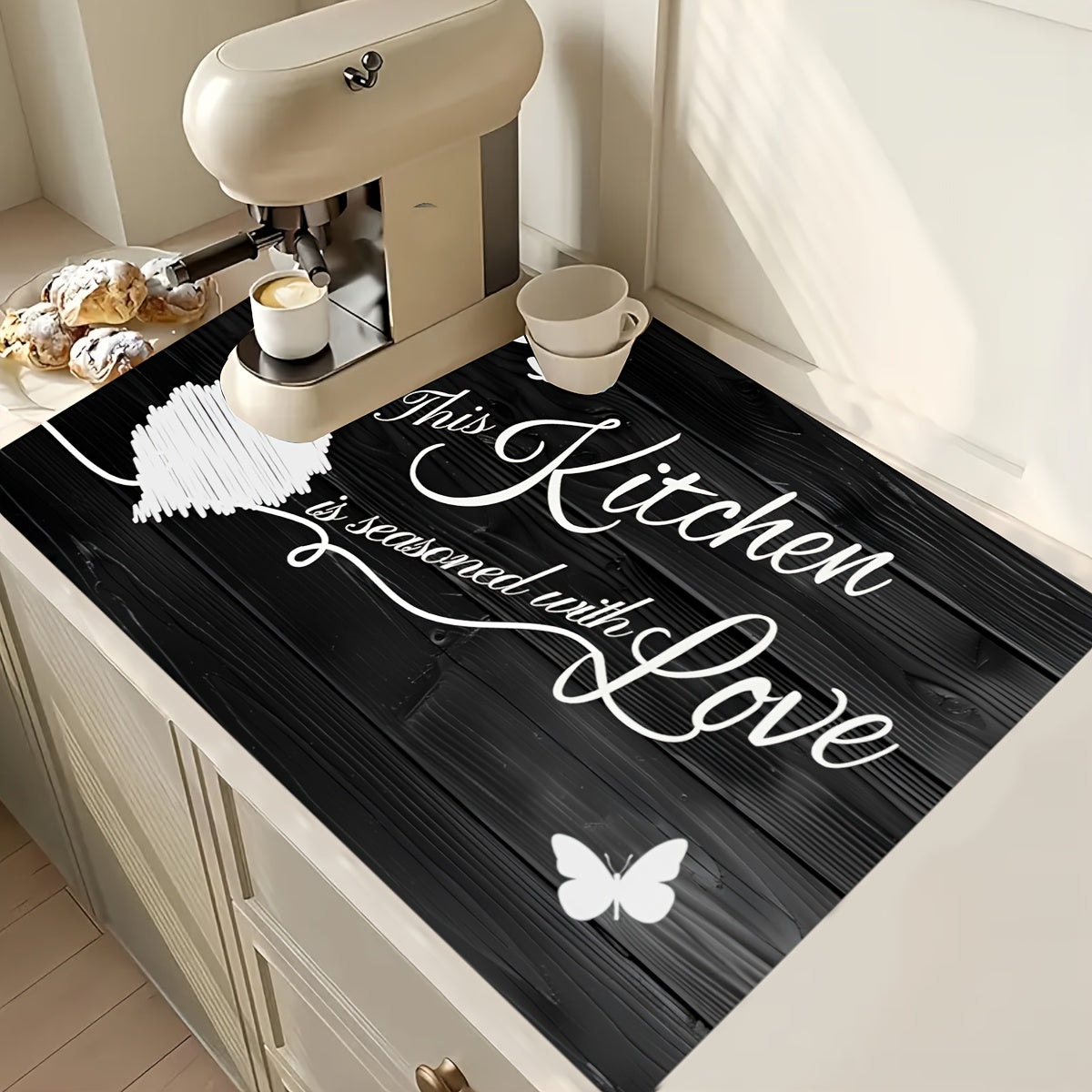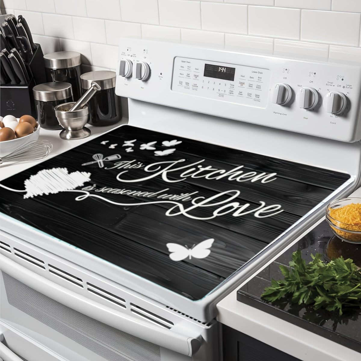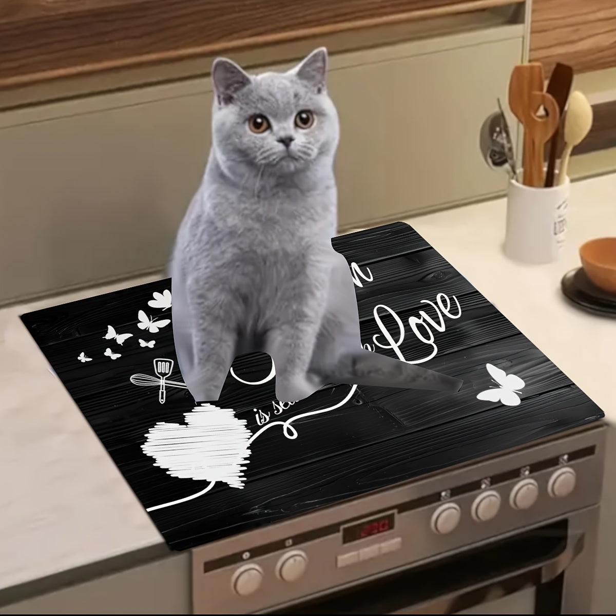 Улучшите свою кухню с нашим "Кухня - сердце дома" сверхбольшим защитным ковриком, устойчивым к царапинам - нескользящим, термостойким подкладкой для столешницы с элегантным цветочным и бабочковым дизайном, идеальным для плит, кофемашин и бытовой техники -