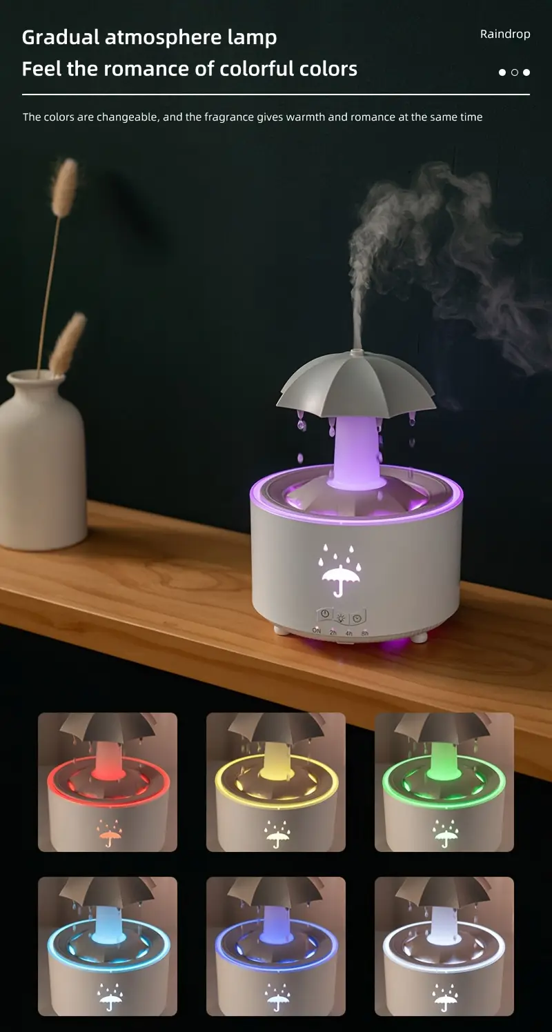 Увлажнитель с эфирным маслом и диффузором для спальни и офиса с 7-цветной LED-подсветкой