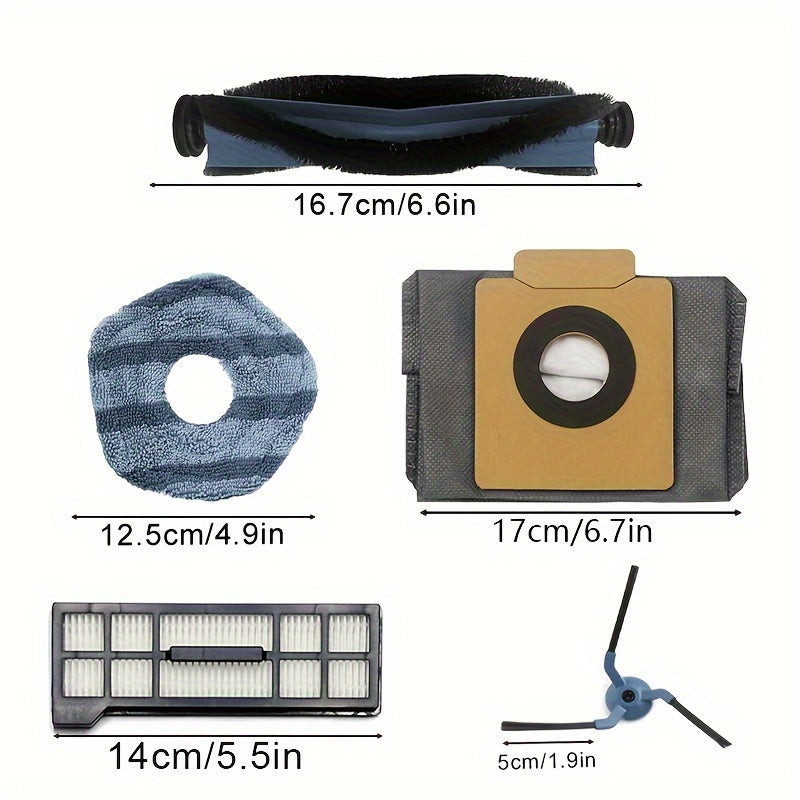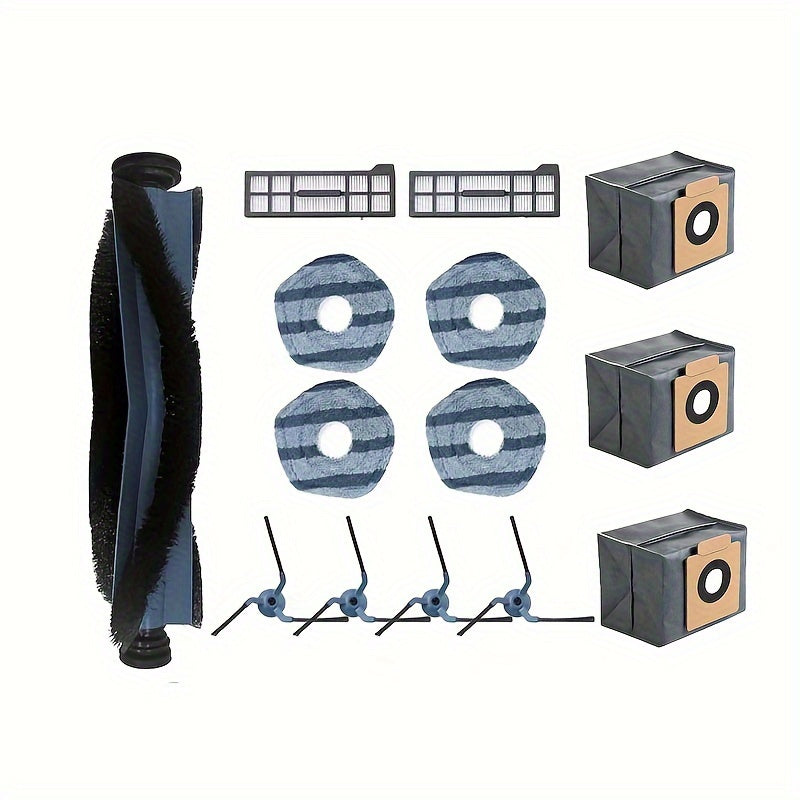 Комплект запасных частей для роботизированной пылесосной станции eufy X10 Pro Omni: 14 предметов - 1 основная щетка, 2 HEPA-фильтра, 4 моп-пада, 3 мешка для пыли, 4 боковых щетки
