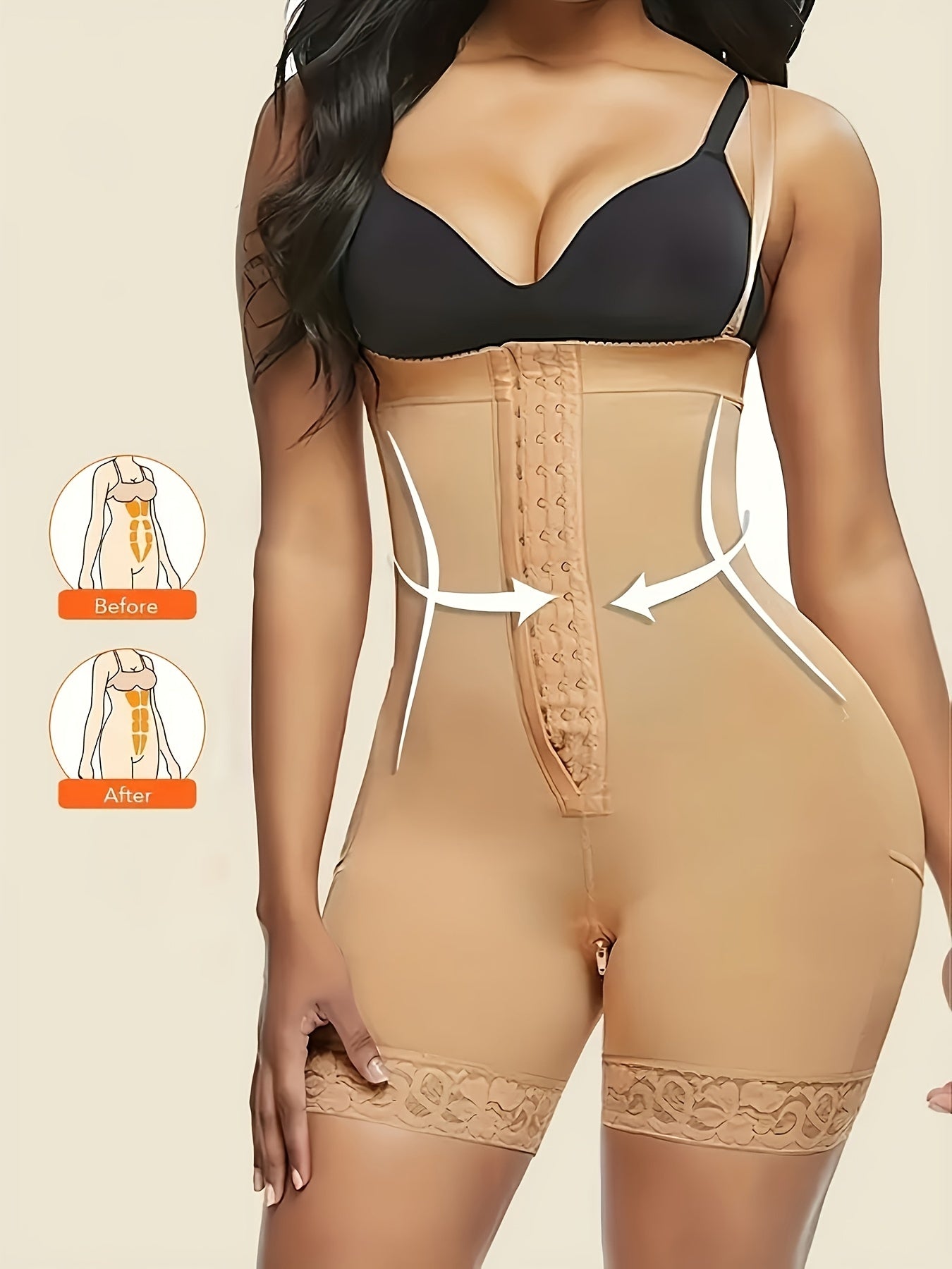 Европейский и американский стиль бодисюта на молнии с кружевными бретелями, дизайном для поднятия ягодиц, шортами с контролем живота.