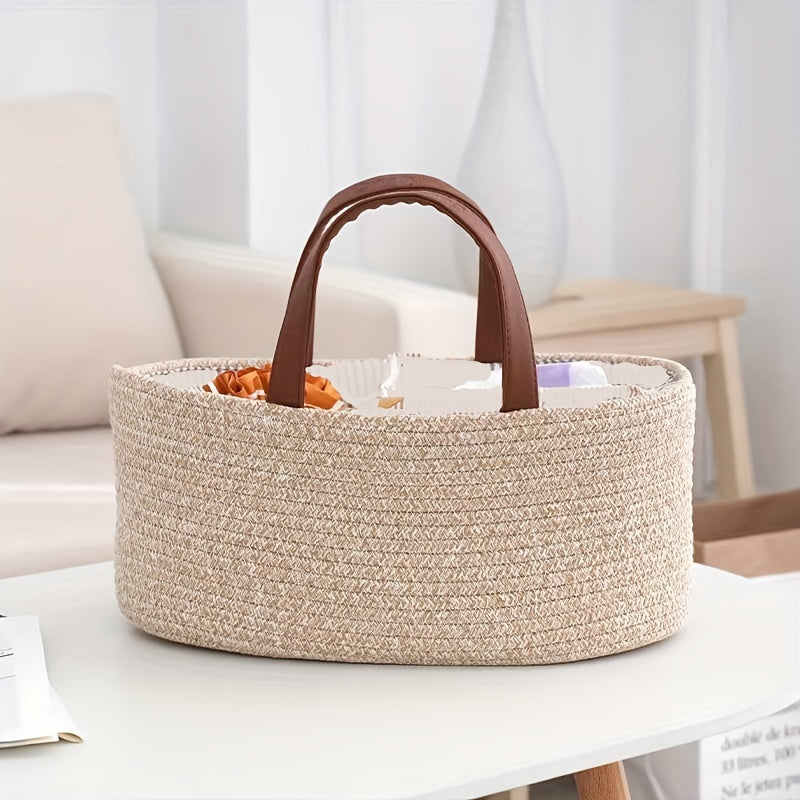 Европейская стильная плетеная корзина для хранения с окном для просмотра, идеально подходит для организации подгузников, игрушек и домашних принадлежностей. Портативный и универсальный дизайн для нужд организации дома.