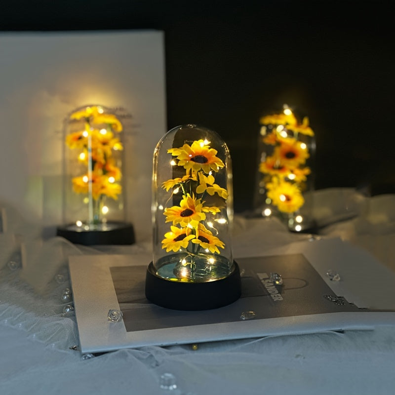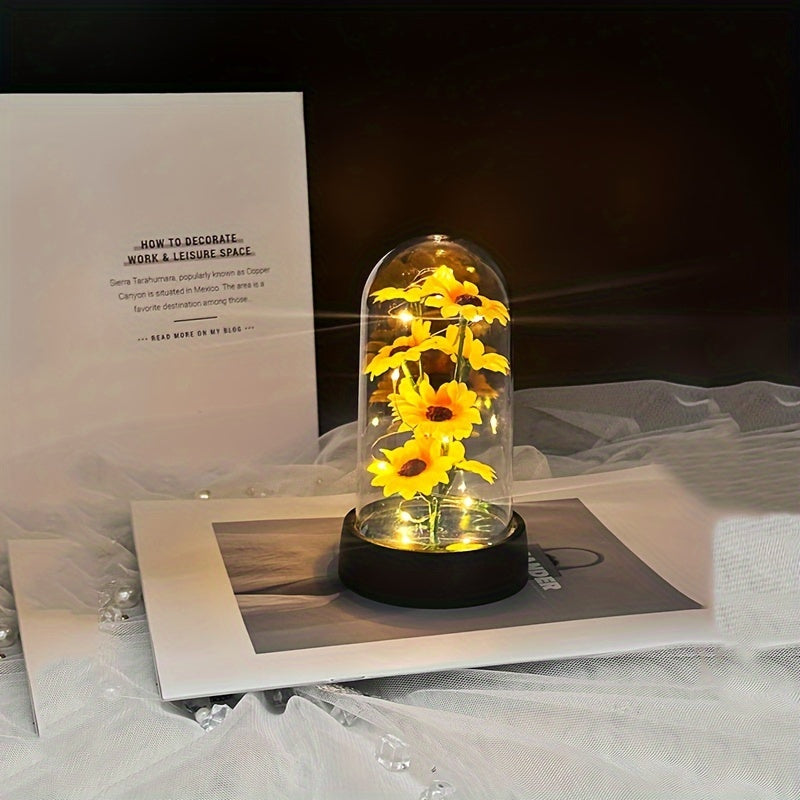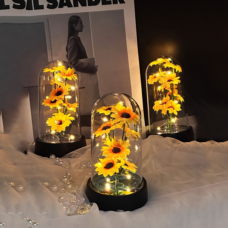 Вечный подсолнух с пластиковым покрытием - Идеально для различных случаев - Батарейное домашнее декорирование