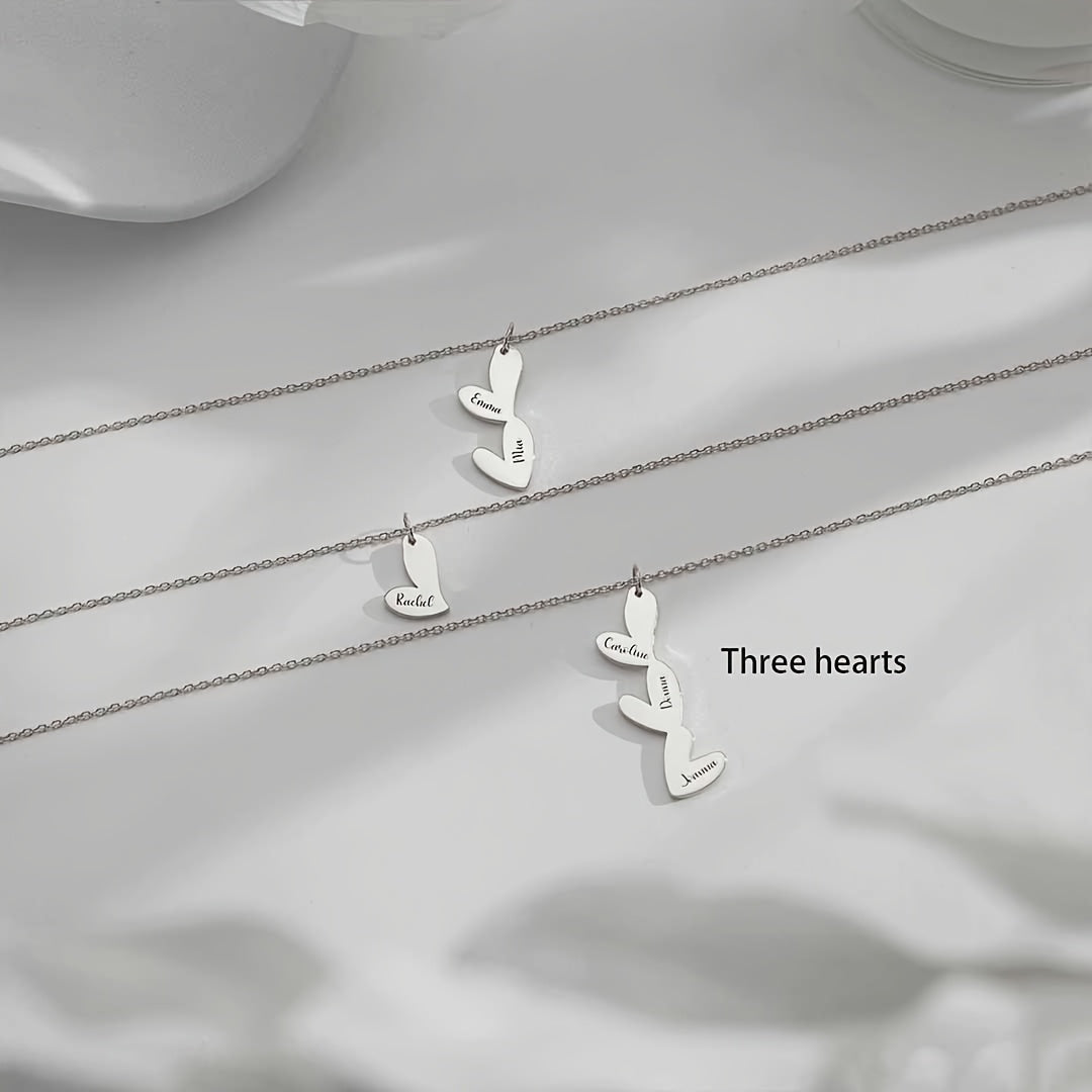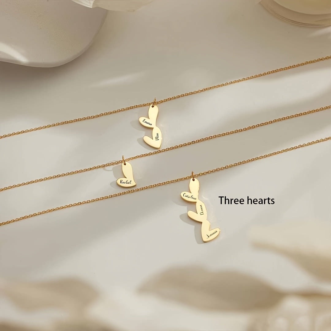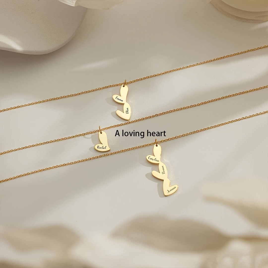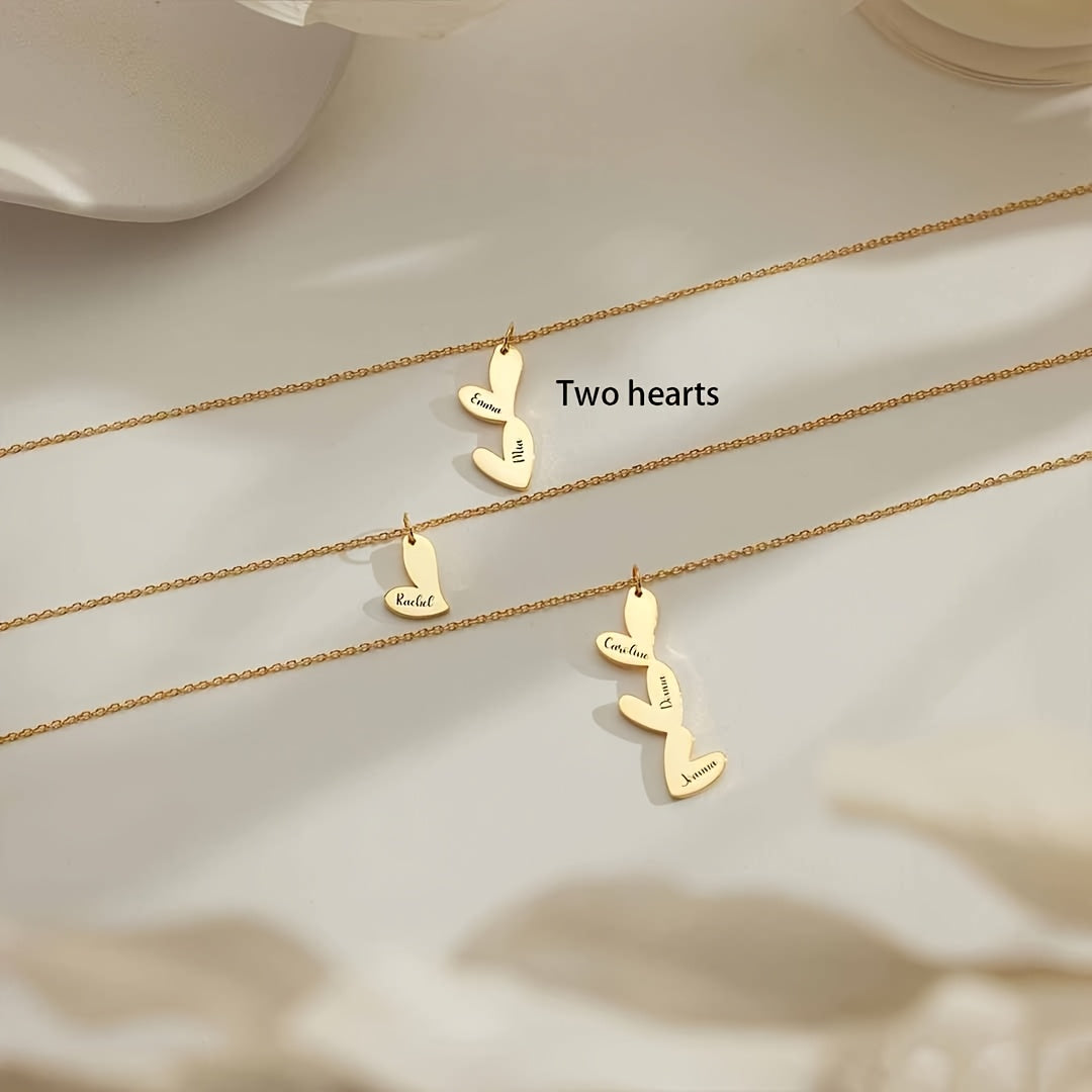 Индивидуальное ожерелье с сердцем с несколькими именами, позолоченное 18K, с скриптовыми и числовыми подвесками для женщин