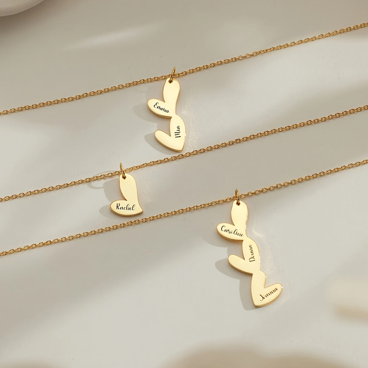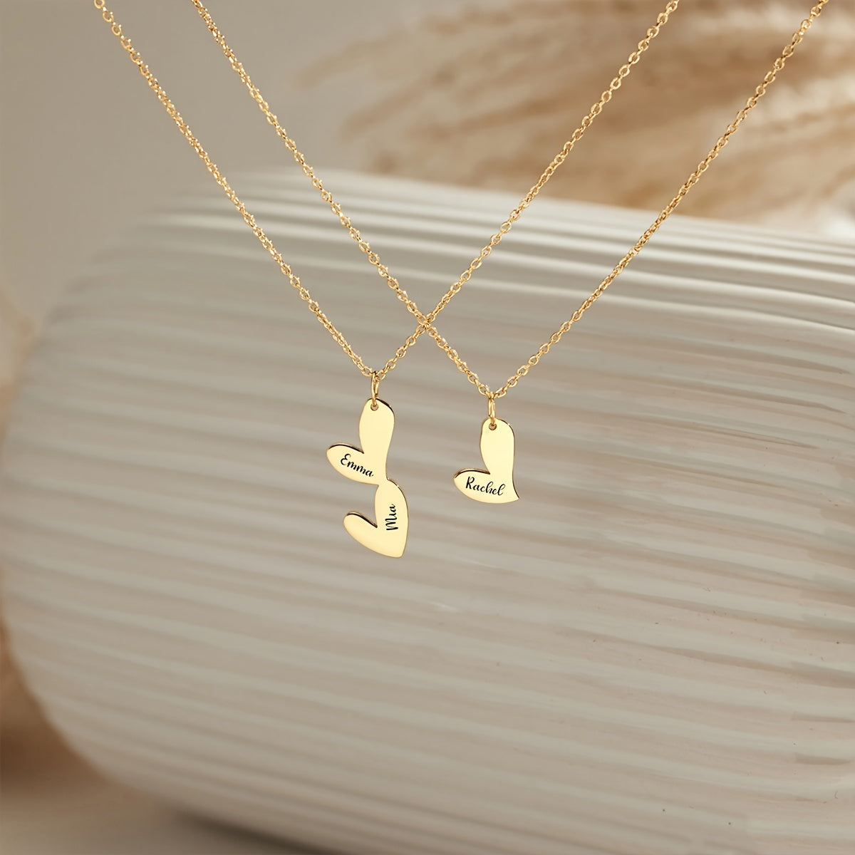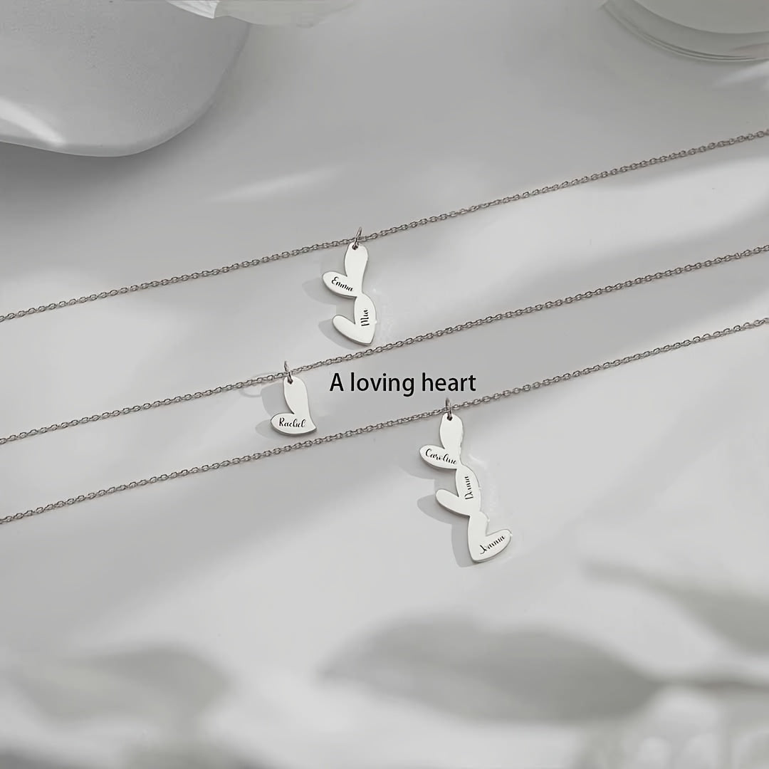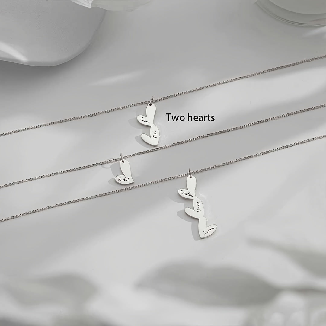 Индивидуальное ожерелье с сердцем с несколькими именами, позолоченное 18K, с скриптовыми и числовыми подвесками для женщин