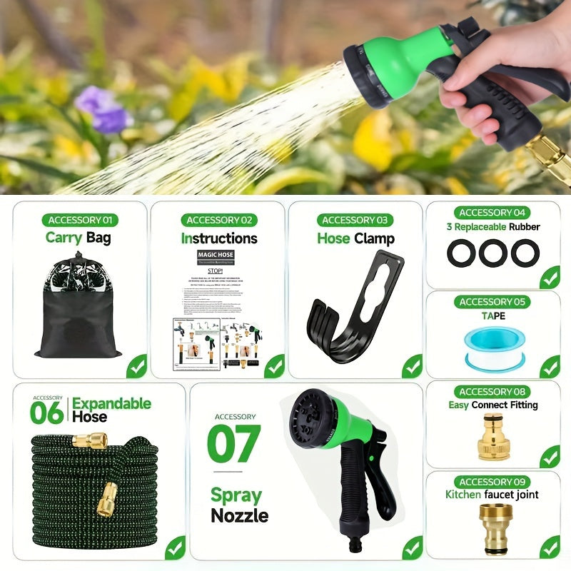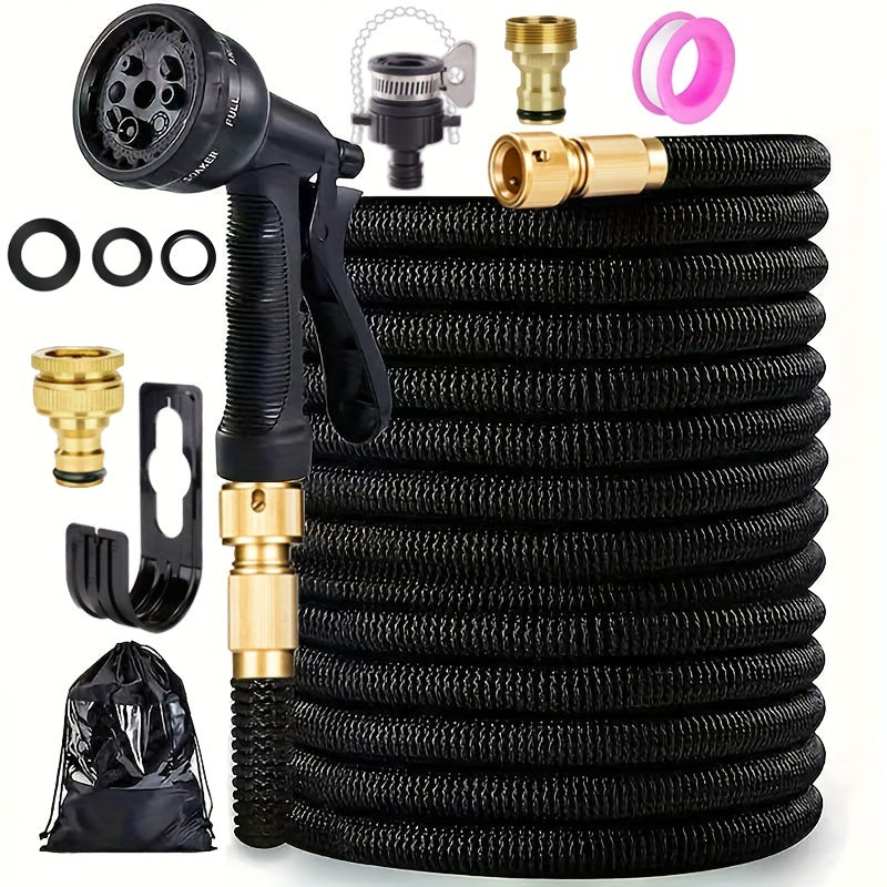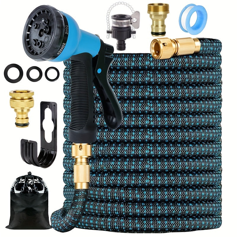 Расширяемый резиновый садовый шланг с герметичными соединителями для полива участка
