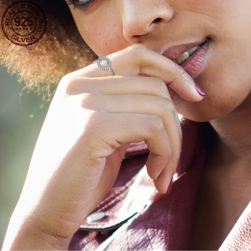 Изысканное кольцо из стерлингового серебра 925 пробы, украшенное синтетическими драгоценными камнями - Вечная высококачественная женская ювелирная бижутерия, идеально подходящая для вечеринок и особых событий, подходит для всех случаев.