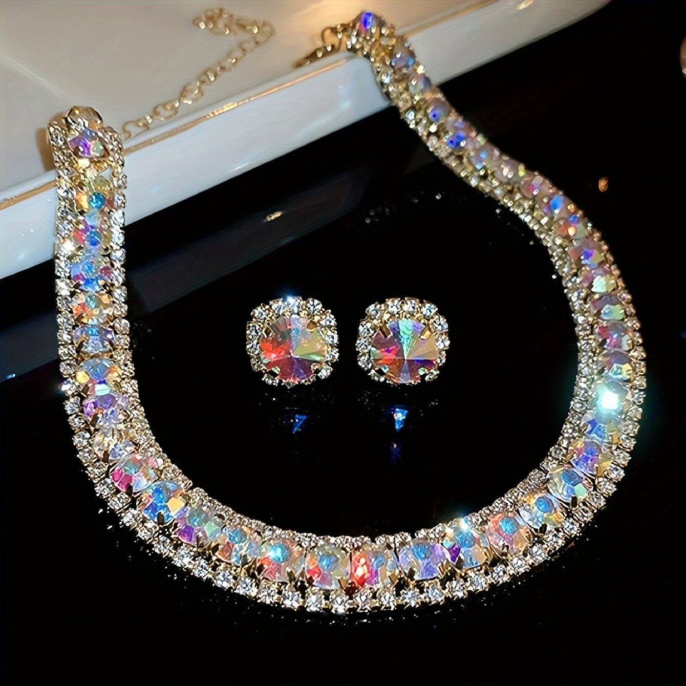 Изысканный комплект из кристаллов: ожерелье и серьги - Роскошные украшения с ринestones для женщин, идеально подходящие для вечеринок и банкетов