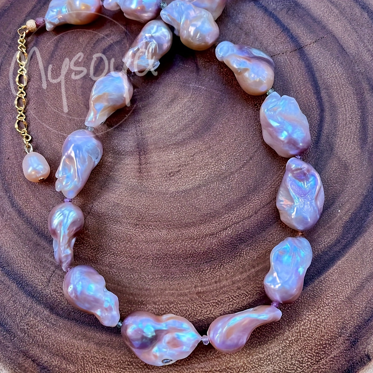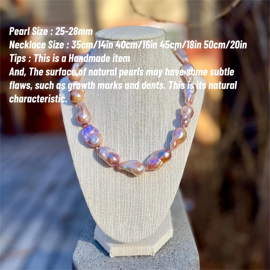 Изысканное ручной работы ожерелье из пресноводных жемчужин с потрясающими барочными жемчужинами фиолетового цвета размером 25-28 мм, идеально подходит для свадеб и особых случаев. Приходит в красивой подарочной коробке для идеальной презентации.